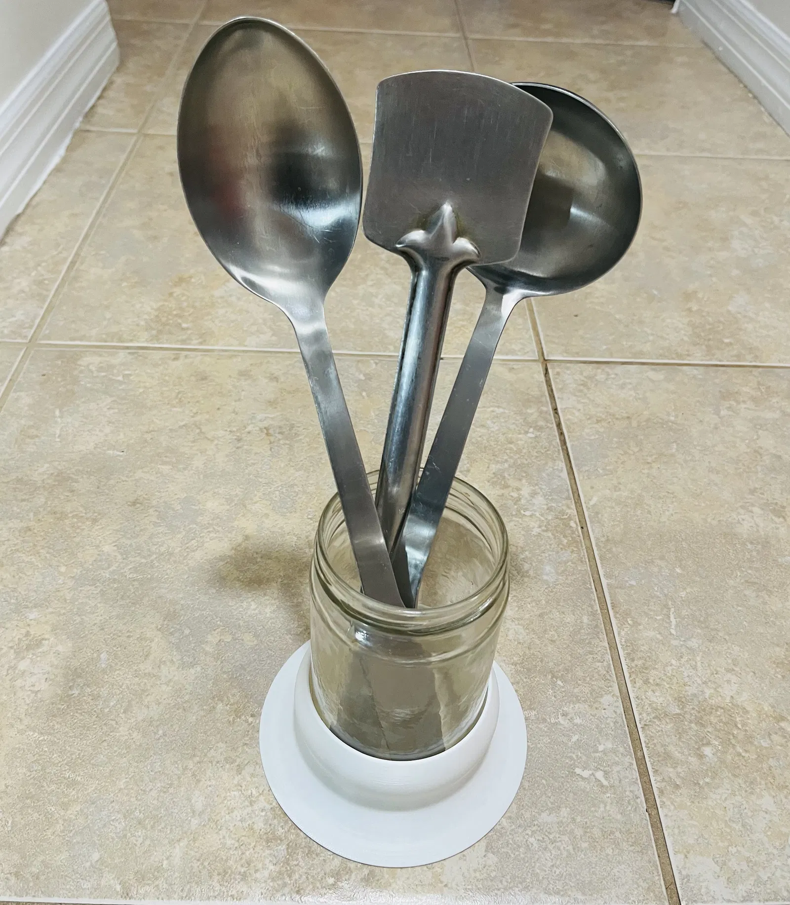 Tận dụng hũ thủy tinh cũ làm chỗ đựng đồ dùng nhà bếp với chân đế tiện lợi. Có thể điều chỉnh kích thước cho phù hợp với nhiều loại hũ khác nhau, đặc biệt là hũ có đường kính khoảng 87mm. In không cần support.