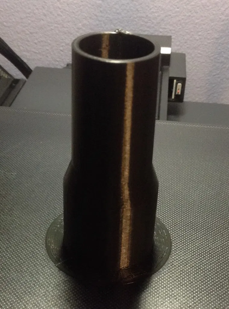 In thử các đầu ngắn để đảm bảo kích thước. Tôi cần điều chỉnh kích thước lên 101.4% để đạt được kích thước mong muốn cho vừa ống hút bụi và các phụ kiện của tôi. Tôi thấy việc sử dụng vành (brim) cho các bản in như thế này giúp bám dính tốt hơn với bàn in.
