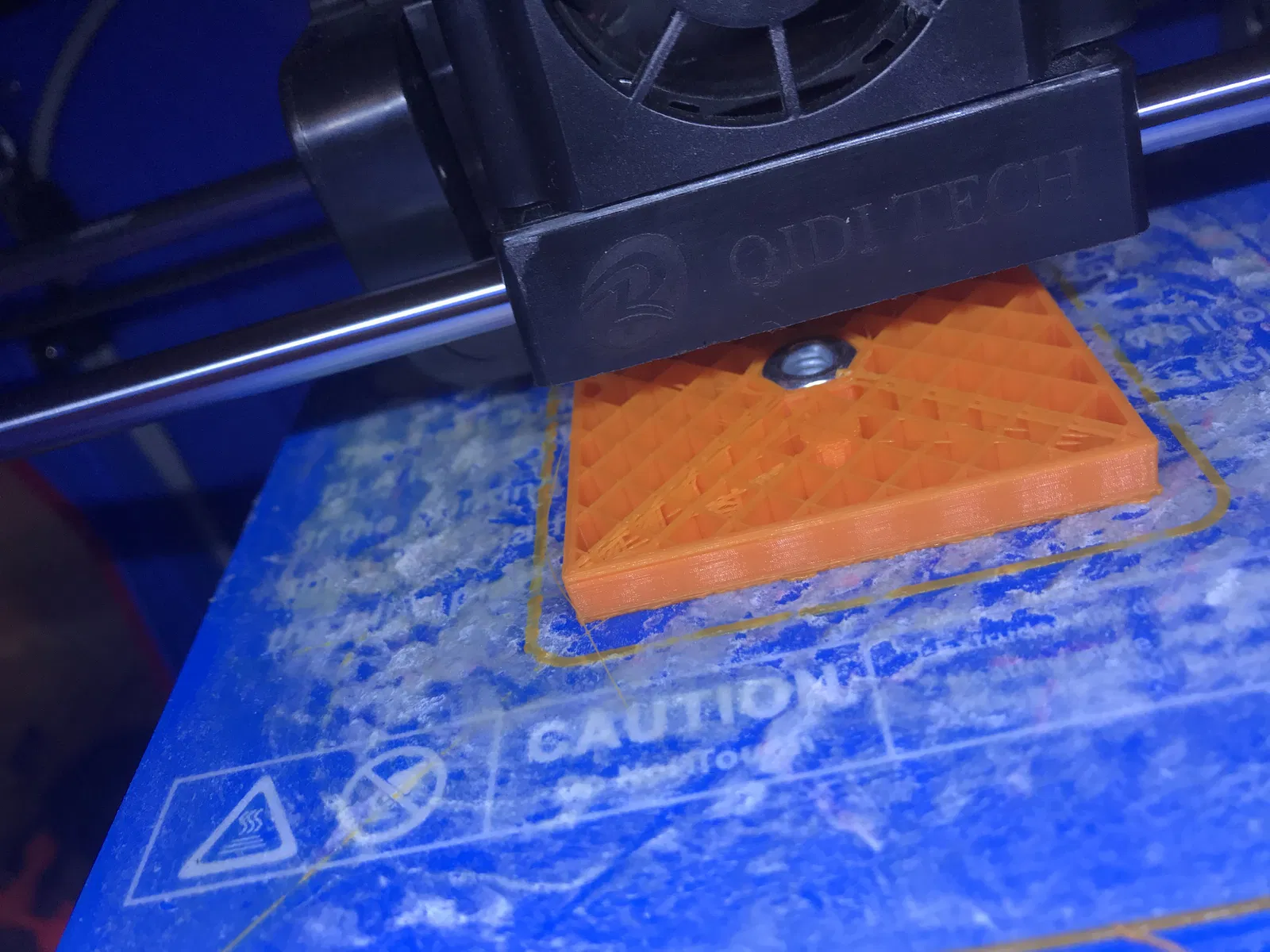 Canh chừng bản in để biết khi nào thả đai ốc vào. Tôi nghĩ là khoảng một tiếng sau khi bắt đầu in.