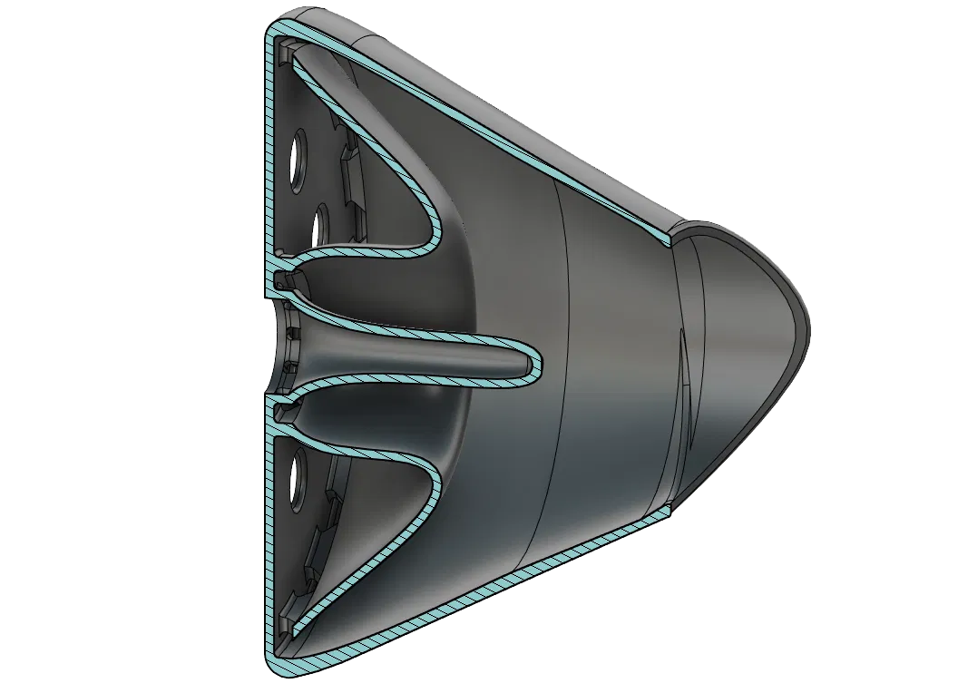 Hình dạng thu được ban đầu được dự định để làm giảm âm thanh trong khoảng 30Hz đến 150Hz, nhưng thay vào đó lại tạo ra một cái loa phóng thanh.