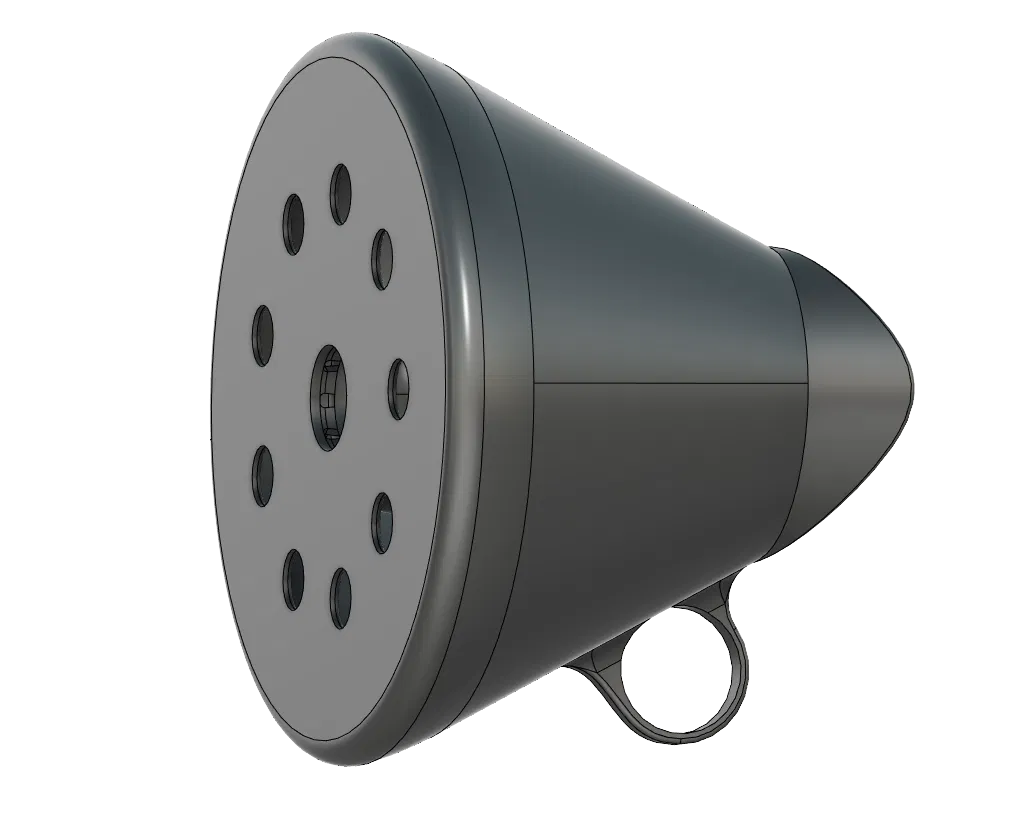 Một cái để hét vào. Thiết kế bên trong là một thử nghiệm về lý thuyết sóng âm. Hình dạng thu được ban đầu được dự định để làm giảm âm thanh nhưng thay vào đó lại tạo ra một cái loa phóng thanh. Không cần sử dụng support cho phần bên trong của thiết bị. Mô hình có thêm tay cầm.