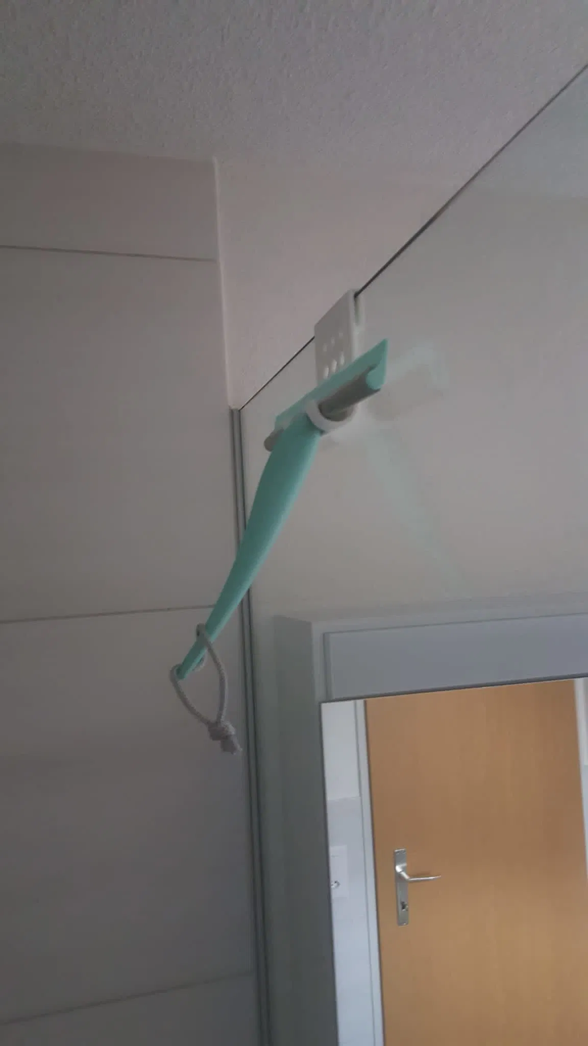 Tìm chỗ để cây gạt kính trong phòng tắm hả? Cài cái giá treo này lên kính là xong, gọn gàng liền. Đảm bảo ai xài cũng thích mê!