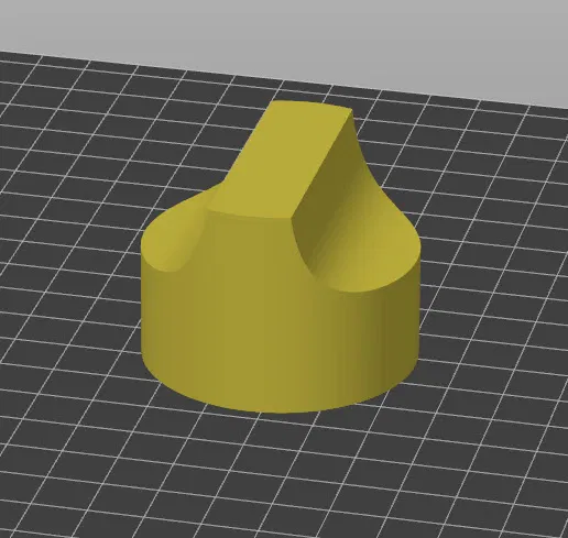Một trong những núm vặn trên máy xông khói Masterbuilt Sportsman Elite của tôi bị gãy, nên tôi đã tạo mẫu một cái mới. Tôi đã vẽ một mũi tên lên đó bằng bút Sharpie bạc. Tôi đã sử dụng nhựa PLA, và nó đã hoạt động tốt trong hơn một năm.
