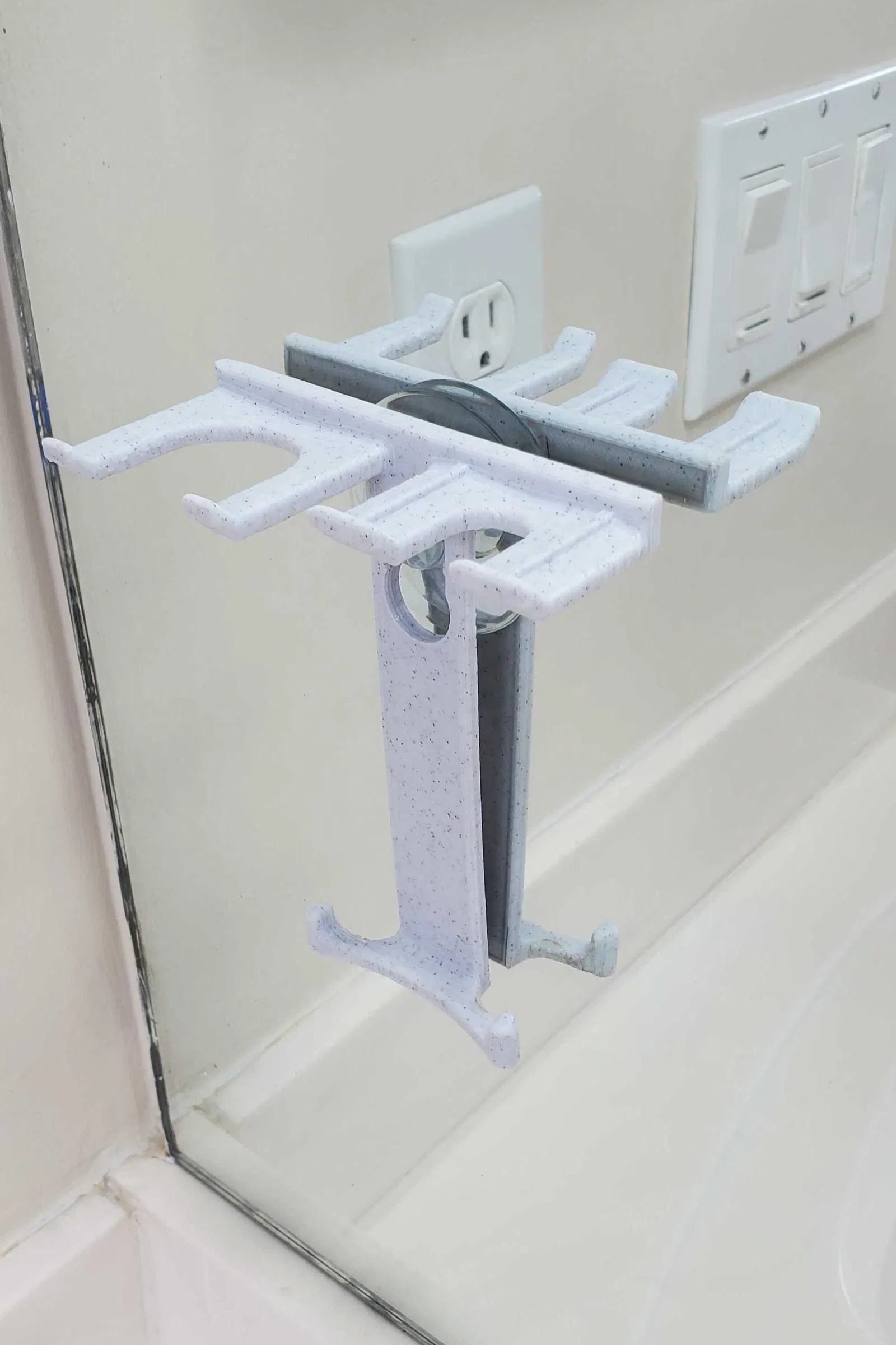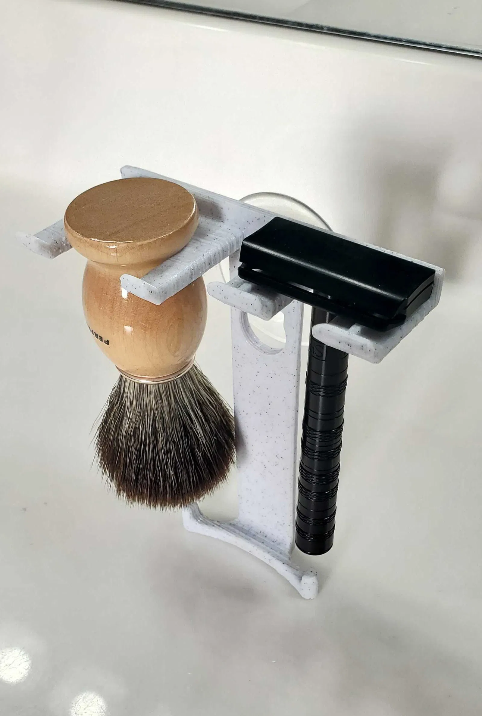 Giá đỡ cho dao cạo Henson, cọ cạo râu và tô gấp lại. Có thể gắn gương hoặc tự đứng. Thoát nước tốt. In bằng PLA, đầu phun 0.4mm, hỗ trợ.