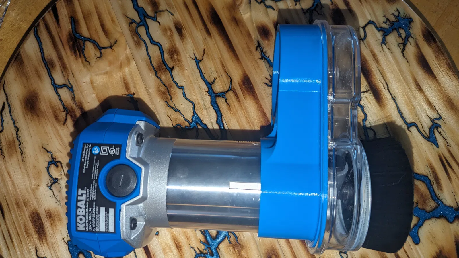 Cái máy phay cầm tay Kobalt của Lowes có kích thước hơi lạ là 65.8mm. Kết quả là cái đế hút bụi Sweepy V2 65mm của mình từ Carbide không gắn vừa. Mình đã mô hình lại cái bộ phận thay thế và thế là xong.