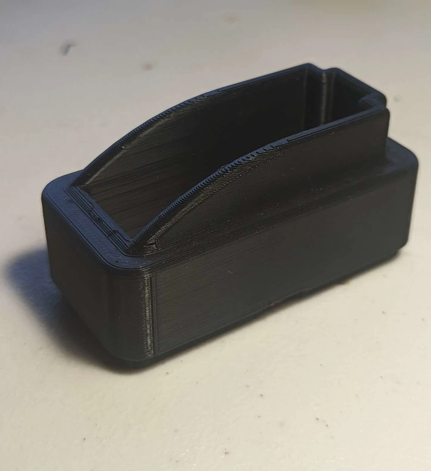 Với băng đạn 30 viên, thì cái phần cuối băng đạn nó sẽ hơi lú ra ngoài cái ô 1x2 của Gridfinity một xíu. Tuy nhiên, cái khoảng trống còn lại này vẫn đủ chỗ cho băng đạn Glock 15 viên ở hàng phía trước dùng chung với chỗ đựng băng đạn Glock của mình, hoặc là một hàng băng đạn AR khác.