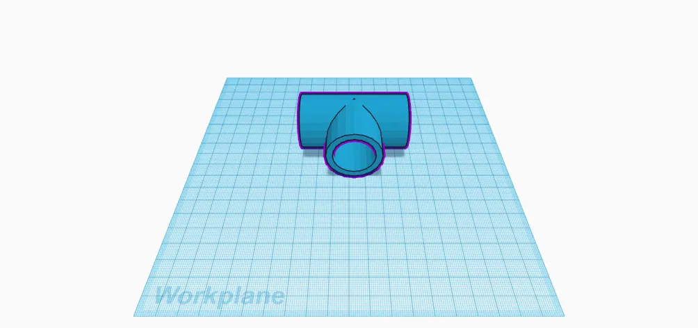 Mô hình co nối chữ T này được thiết kế cho ống PVC 3/4", là một phần của dự án khung màn chiếu máy chiếu 150". Người dùng đang học Tinkercad và cũng dự định tạo thêm các loại co nối '+' và 'L' khác.