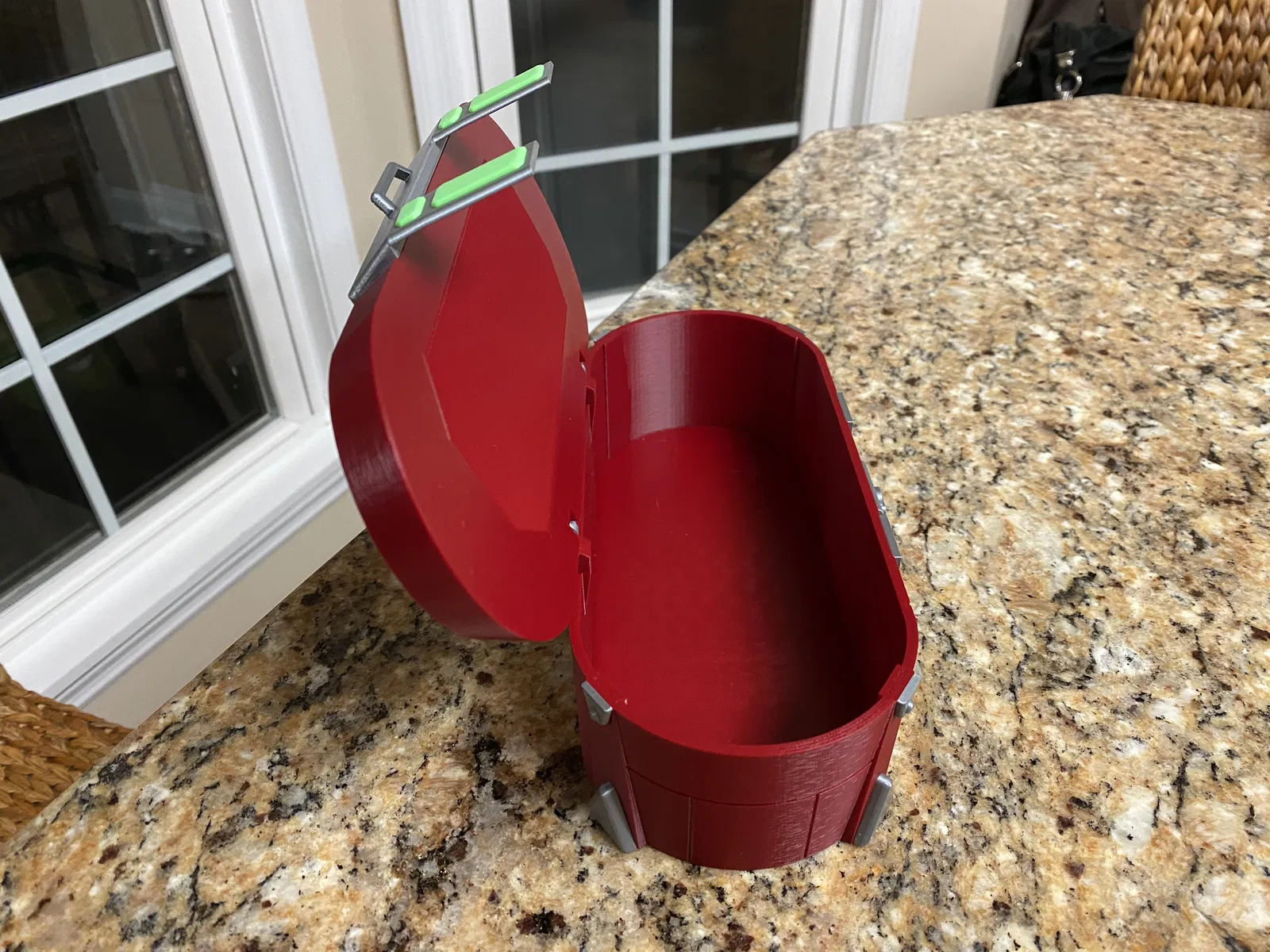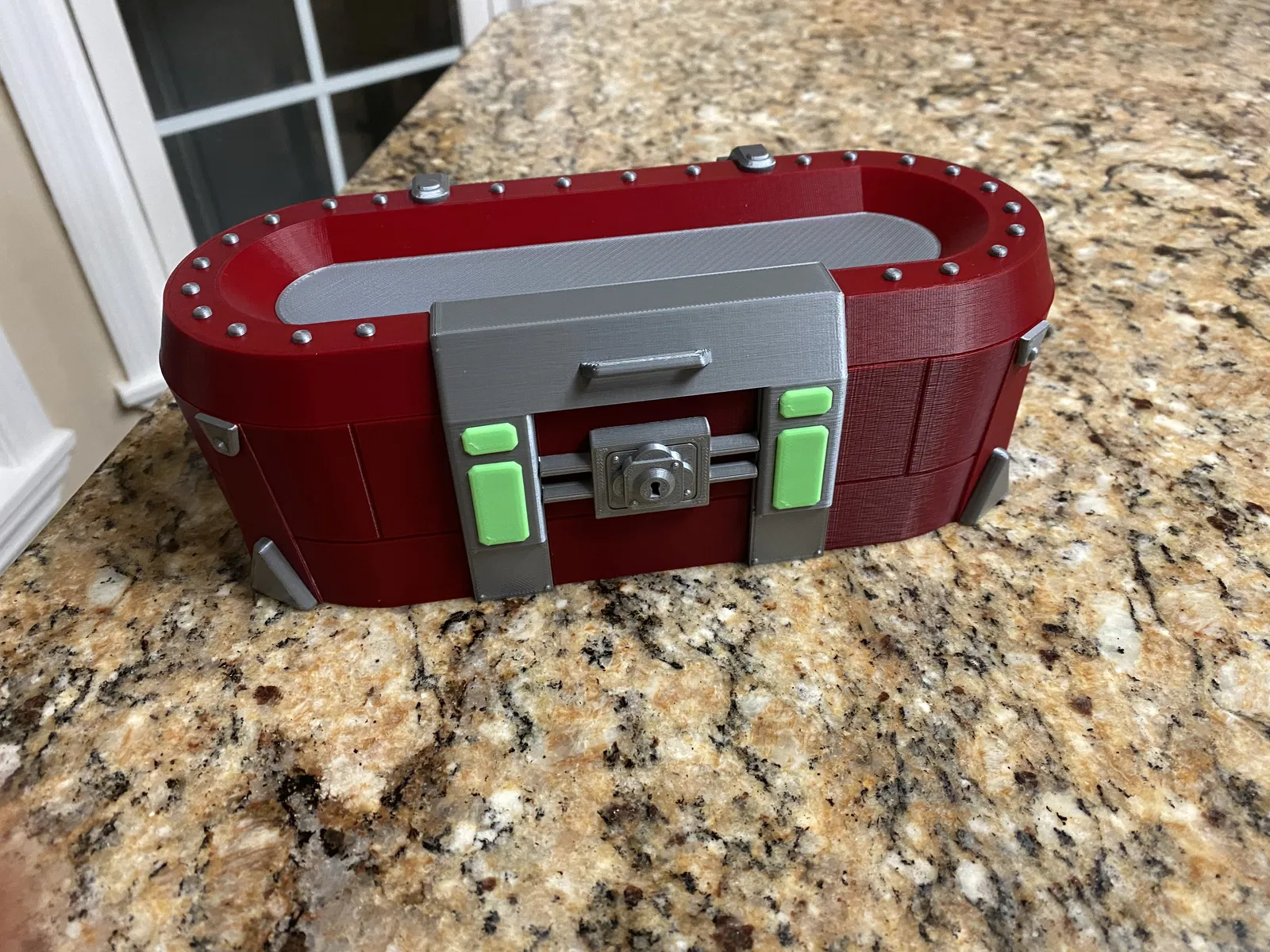 Rương đồ Borderlands được thiết kế để mỗi bộ phận có thể in bằng sợi nhựa đúng màu và sau đó dán lại với nhau.
