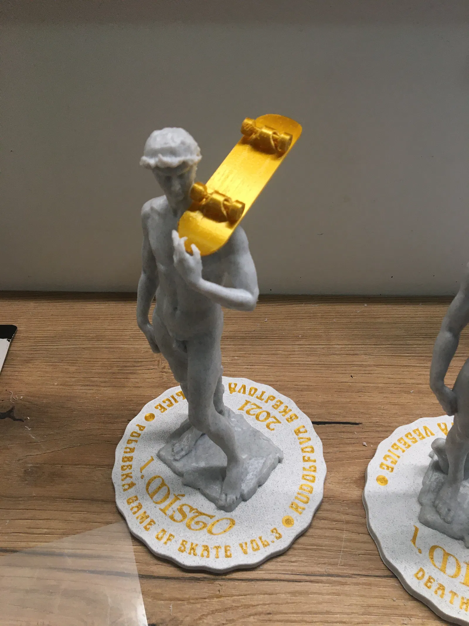 Tượng này được in cho các cuộc đua ván trượt ở Brandýs nad Labem. David không cầm miếng vải trên tay như tượng gốc. Nhờ vậy, bạn có thể đặt bất cứ thứ gì vào tay cậu ấy.