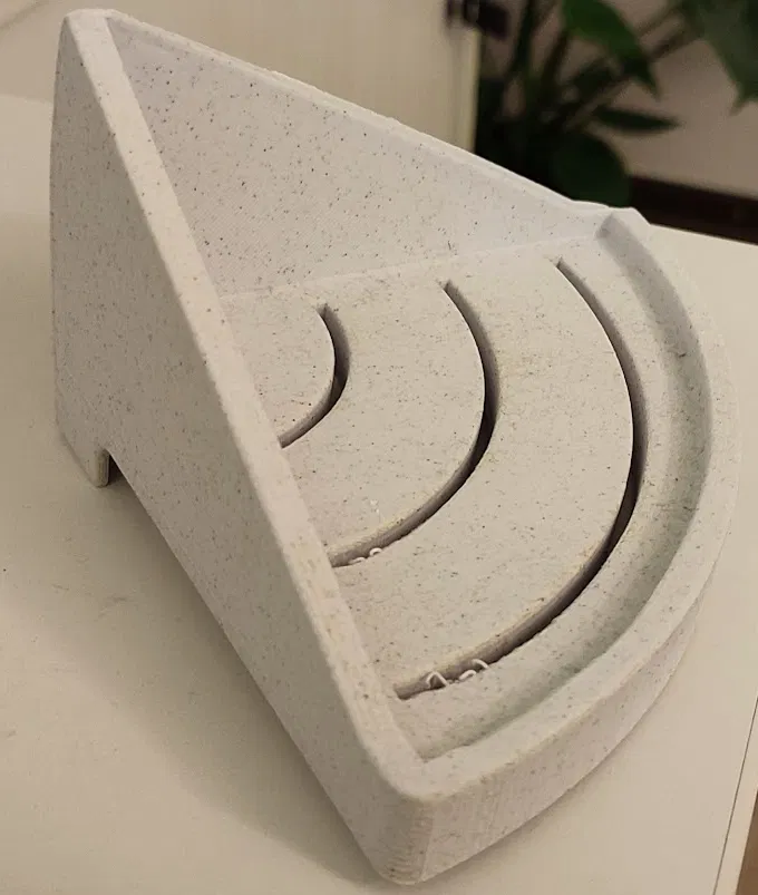 Mô hình này là một cái giá đỡ đồ trong phòng tắm, có thể in mà không cần vật liệu hỗ trợ nếu bạn đặt nó nằm nghiêng. Bạn có thể lắp đặt cái giá đỡ này ở góc phòng tắm bằng băng keo chống nước hoặc keo dán. Mục đích chính của nó là để đựng dầu gội, xà phòng hoặc những thứ tương tự.