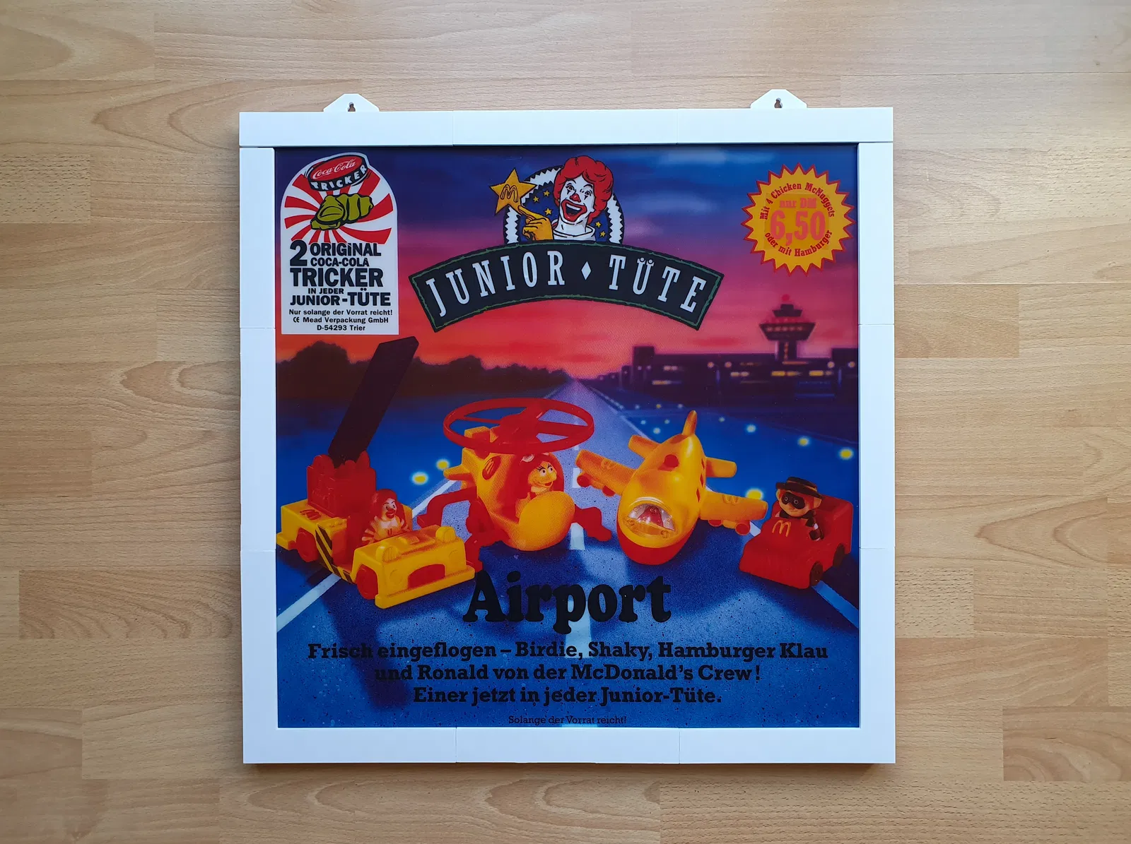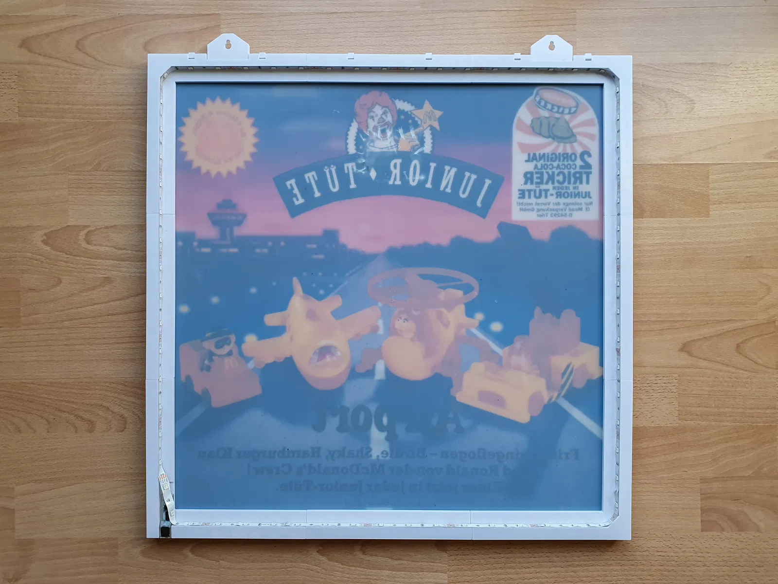 Đây là một khung đèn có thể treo được cho translite của McDonalds với kích thước 55x55cm / 22x22in, được sử dụng trong những năm 80 và 90 để quảng cáo đồ chơi Happy Meal. Khung có thể chứa dải đèn LED dài tới 220cm.