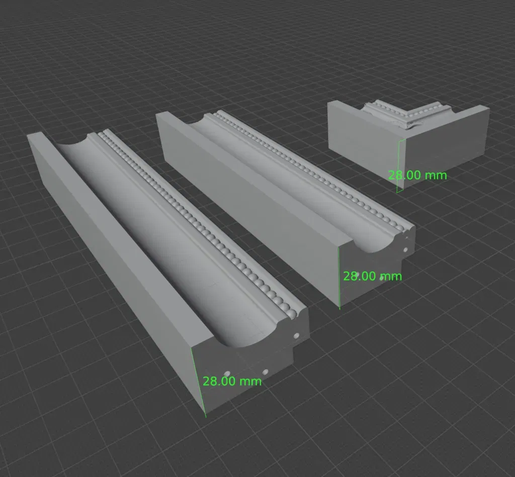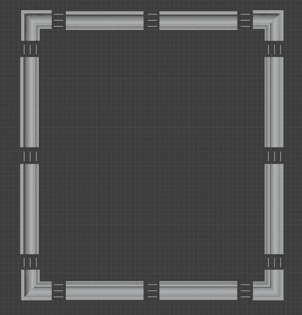 Đối với nhu cầu của tôi, tôi cần 4 góc và 4 mảnh dài và ngắn. Khi kết hợp với các mảnh góc, điều này cho tôi kích thước bên trong là 15" x 17" (với chỉ một vài milimét chỗ trống cho kính).