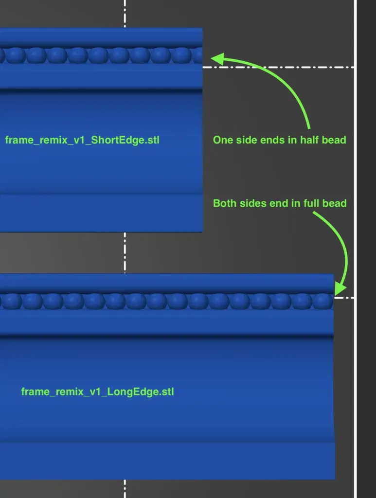LƯU Ý RẰNG CÁC ĐƯỜNG "NGẮN" VÀ "DÀI" KHÔNG GIỐNG NHAU! Các mảnh cạnh ngắn hơn có 1 đầu cắt một trong các hình cầu bi thành hai nửa. (Đây là cách để đáp ứng nhu cầu của tôi với ít sửa đổi nhất.)