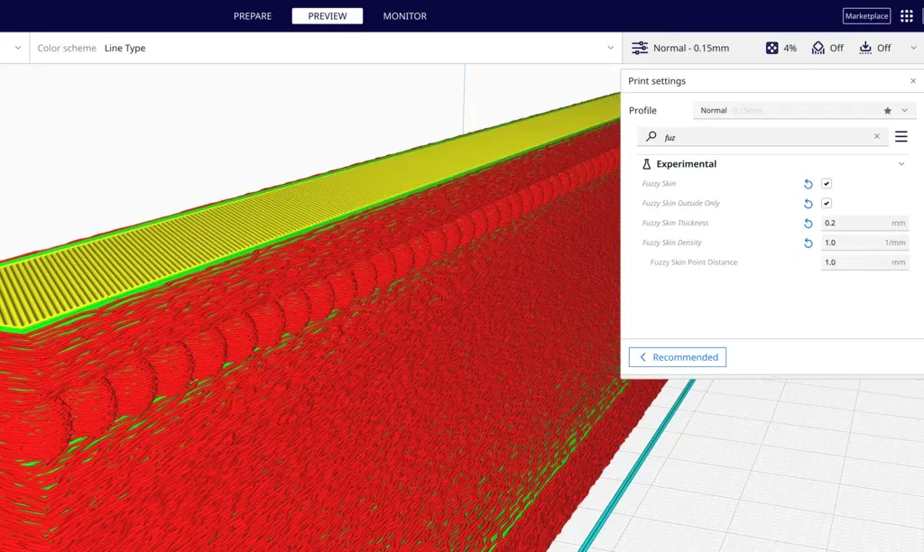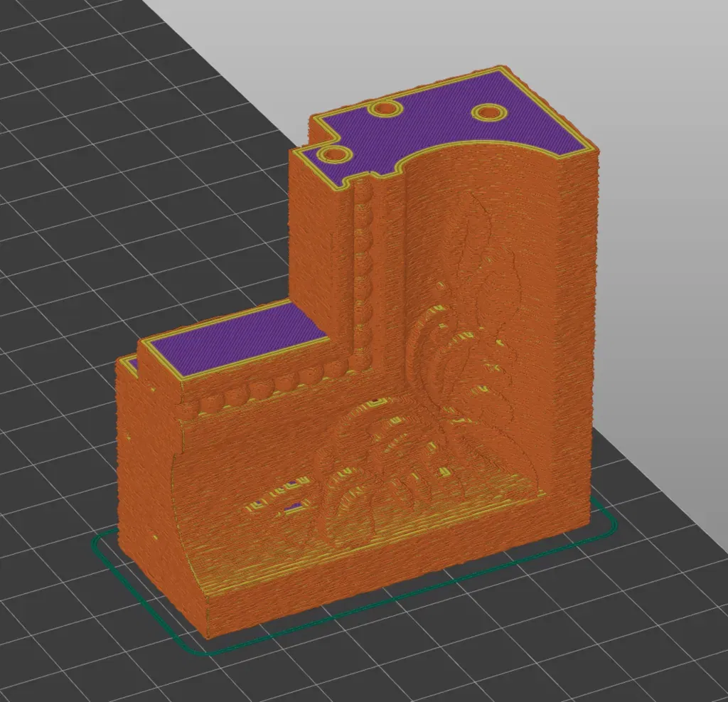 Trong các tệp GCODE của tôi, bạn có thể thấy "da mờ" của eSlicer, đây là một người làm phép thuật để che giấu các đường lớp. Tôi khá muốn bản in của mình trông giống như gỗ. Tôi cũng biết rằng tôi sẽ cần thực hiện một số công việc chà nhám và dán thủ công ở cuối, vì vậy các lớp mờ sẽ làm cho điều này dễ dàng hơn.