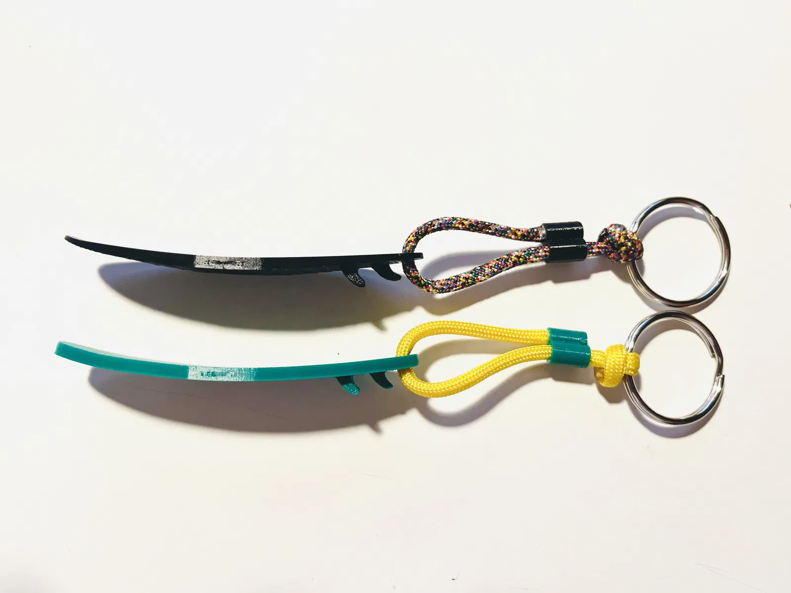 Móc khóa ván lướt sóng Mini Malibu 90mm có chỗ để gắn thẻ NFC bên trong và vây. In bằng PETG, bạn có thể tùy chỉnh màu sắc vây và đặt liên kết cá nhân lên thẻ NFC. Món quà độc đáo cho người yêu lướt sóng!