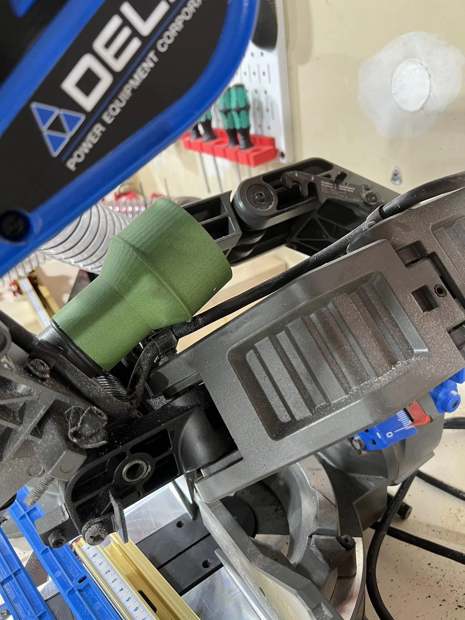 Tui xài ống 2.5" cho máy cắt miter với máy router, sau khi sắm cái máy mới thì tui cần chuyển cái cổng này sang ống của tui, và cái này làm tốt việc đó.