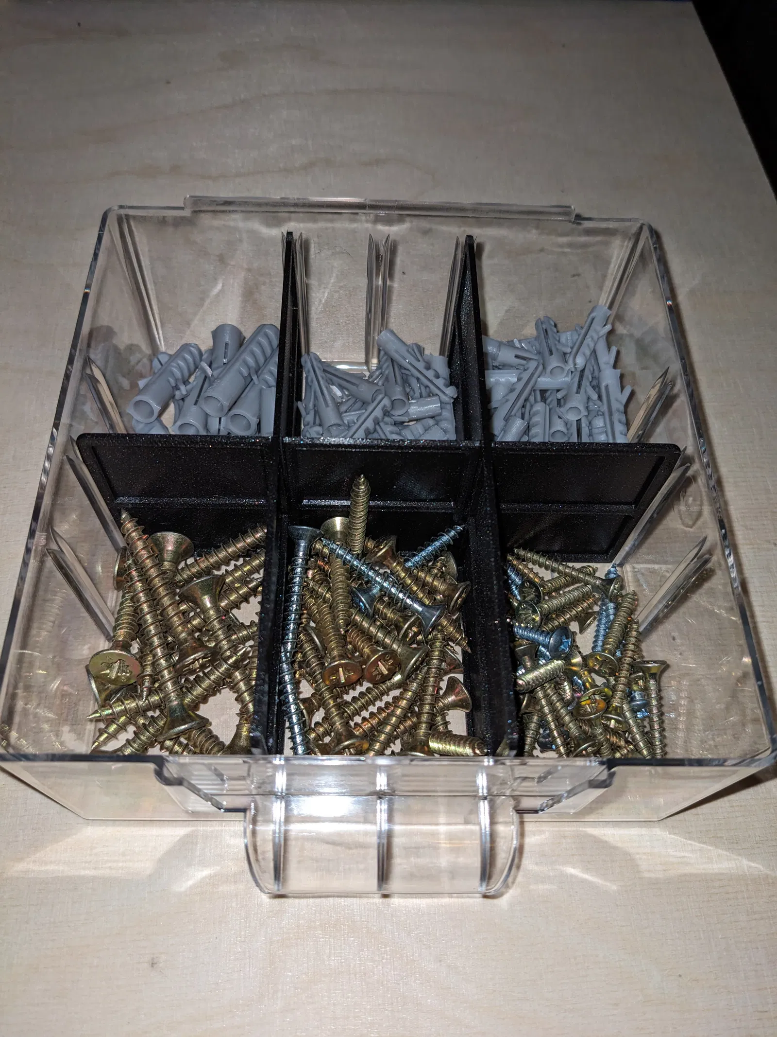 Vách ngăn chia hộc tủ dùng cho tủ Sorter, giúp bạn sắp xếp đồ đạc gọn gàng hơn. Có nhiều loại cho các kích thước và kiểu ngăn kéo khác nhau. File OpenSCAD đi kèm để bạn tùy chỉnh dễ dàng.