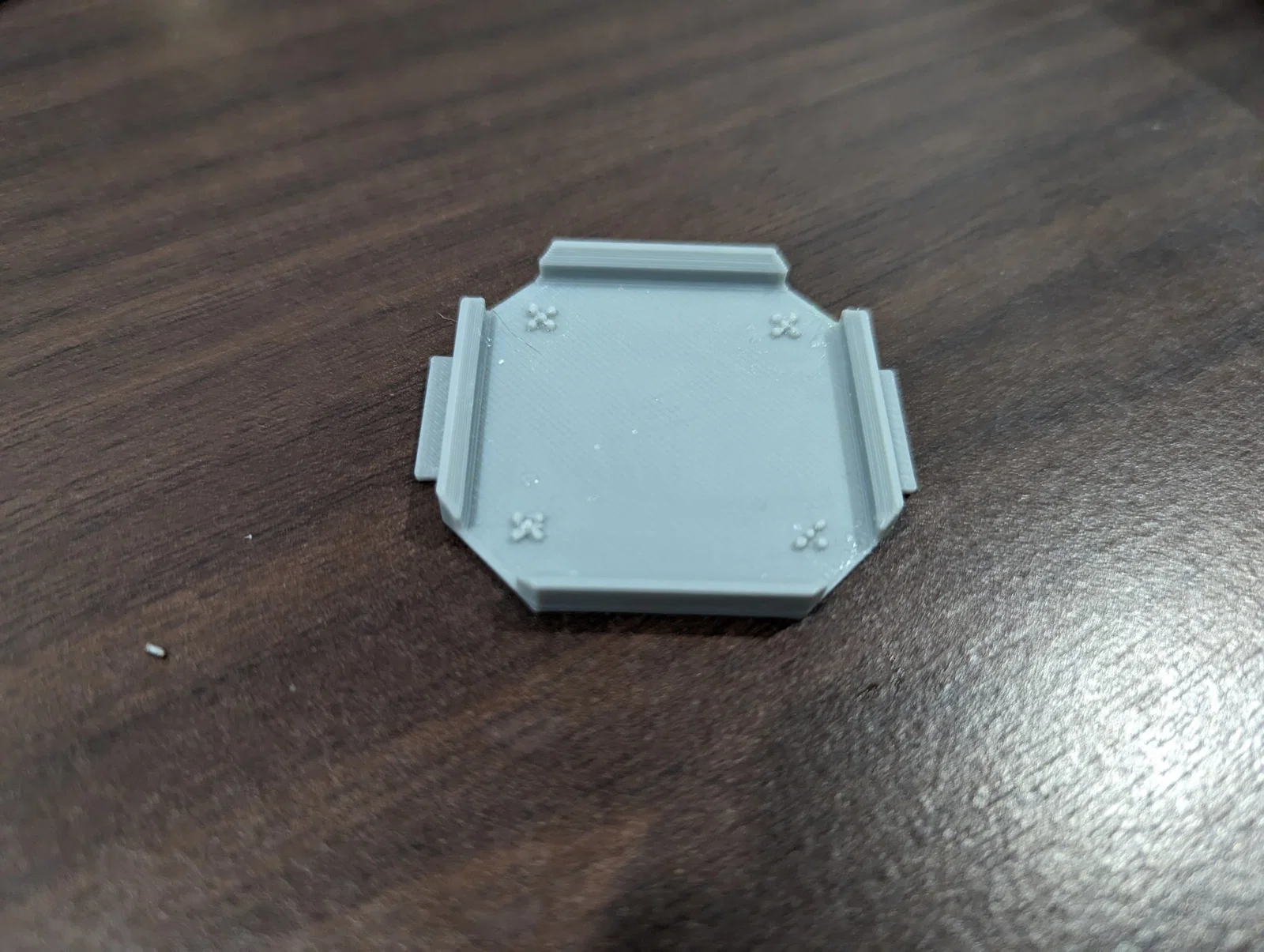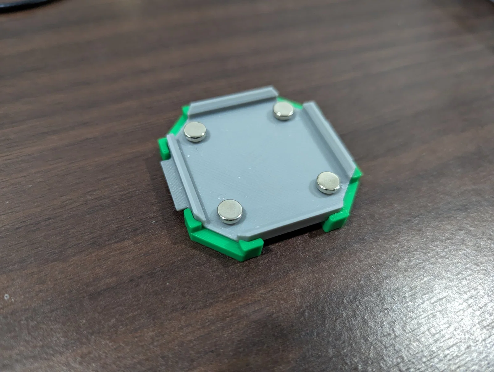 Tôi đã thay đổi các vòng tròn mà nam châm thường đặt lên thành các chấm/gò, và tôi đã tăng chiều cao của chúng từ 0.6mm lên 0.8mm. Điều này làm giảm diện tích bề mặt của jig tiếp xúc với nam châm, cũng như lượng diện tích bề mặt mà keo có thể dính vào, và điều này đã làm cho việc dán nam châm dễ dàng hơn nhiều.