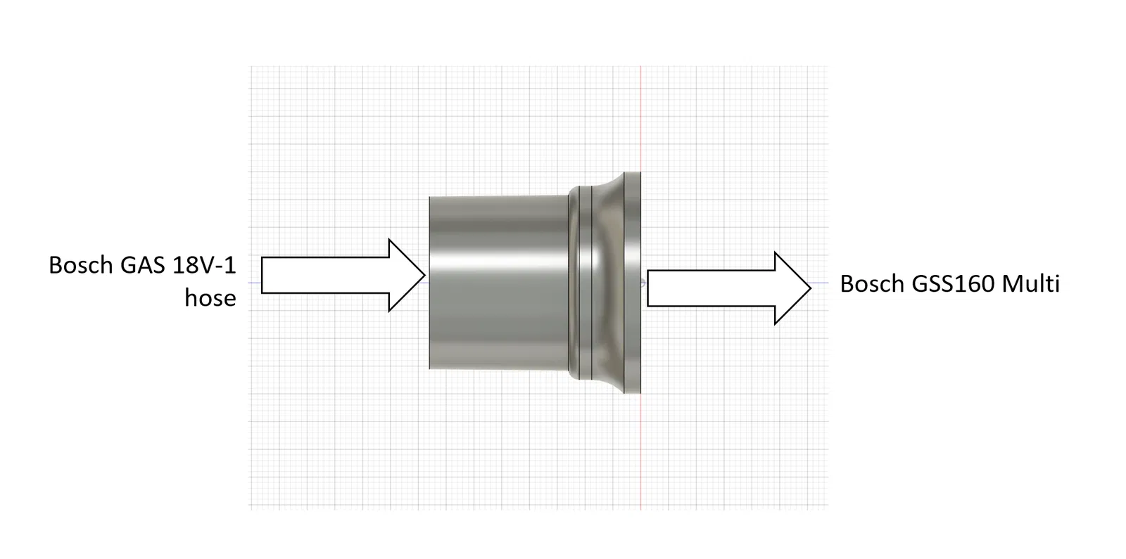 Đây là một adapter giúp bạn kết nối ống hút bụi của máy BOSCH GAS 18v-1 với máy chà nhám rung GSS 160 Multi. Giờ thì bạn có thể thay thế hộp đựng bụi của GSS 160 Multi bằng ống hút bụi mạnh mẽ hơn rồi!