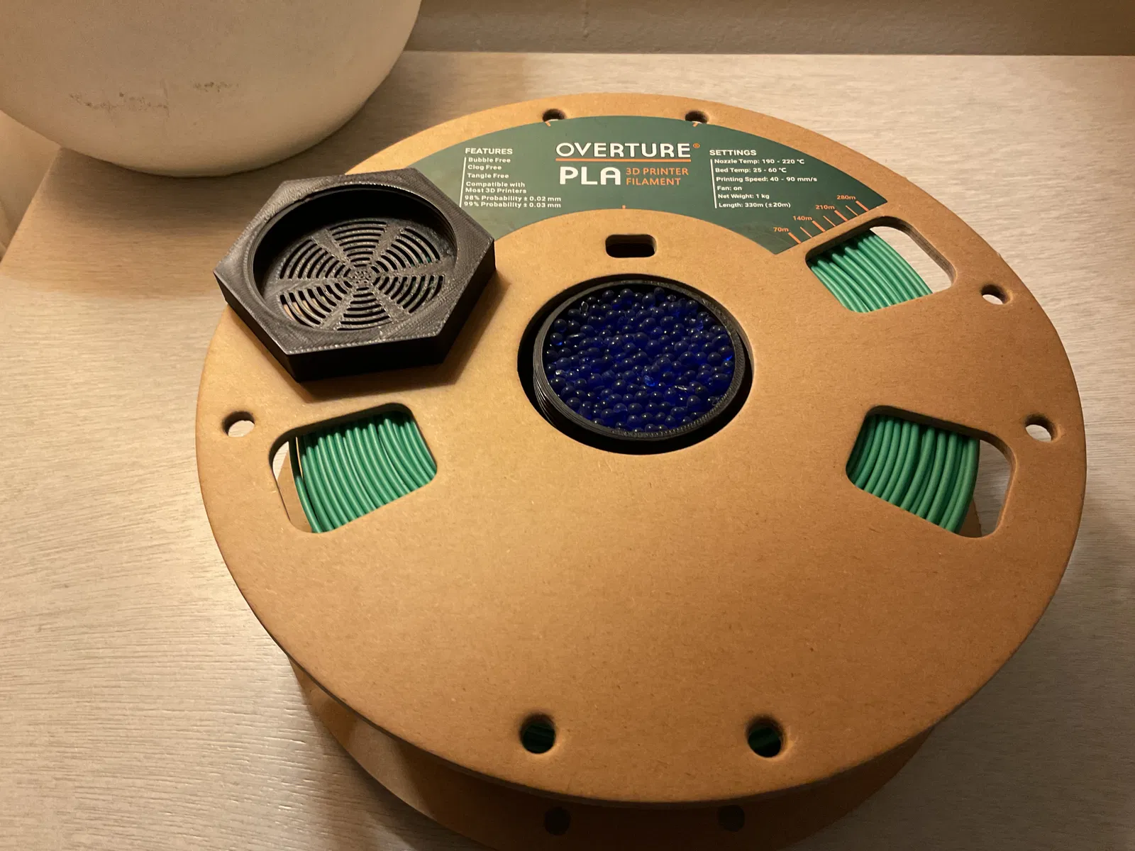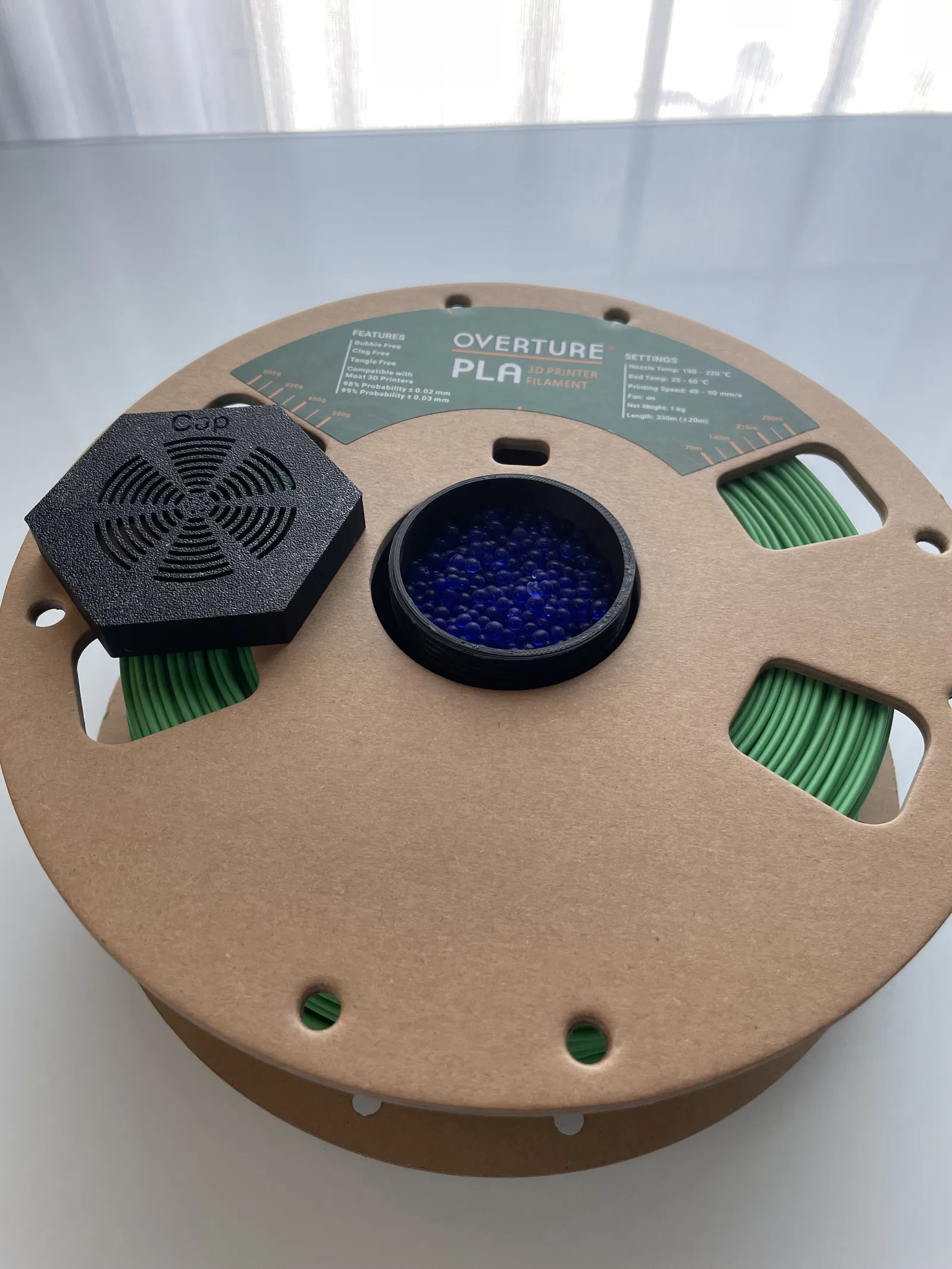 Hộp đựng chất hút ẩm/gel silica độc đáo, có thể gắn vừa mọi cuộn dây filament. Giúp bảo quản vật liệu in, tiết kiệm không gian và mang lại vẻ ngoài gọn gàng, thẩm mỹ cho không gian làm việc của bạn. Lắp ráp đơn giản chỉ với 2 bộ phận.