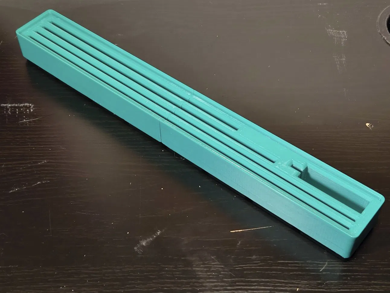 - Chiều dài của nó quá lớn để in trong một lần trên máy MK3S của tôi, nên tôi đã chia nó làm hai và ghép lại bằng chốt (sử dụng tính năng "cắt" tuyệt vời của PrusaSlicer). Tôi đã đính kèm tệp dự án 3mf với các bộ phận đã được cắt và các chốt nối. Mô hình trong ảnh là kết quả của việc in tệp dự án này.