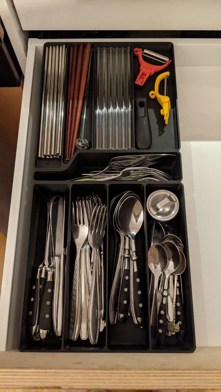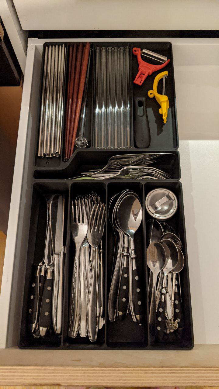Tôi tạo ra cái khay chia muỗng nĩa này cho IKEA METOD nè. Nó xài ngon lắm nếu mà bạn có mấy cái ngăn kéo lồng trong ngăn kéo á.