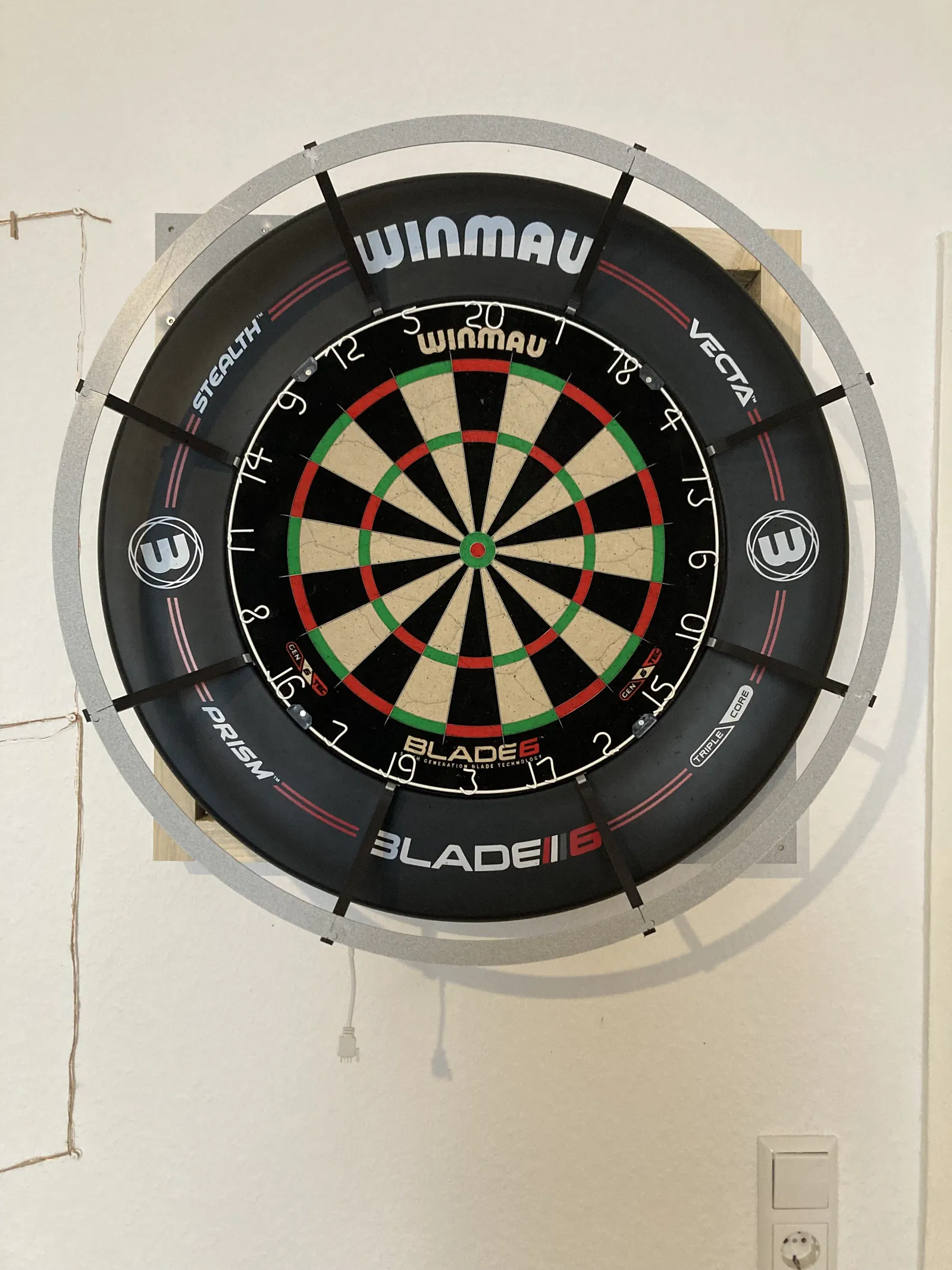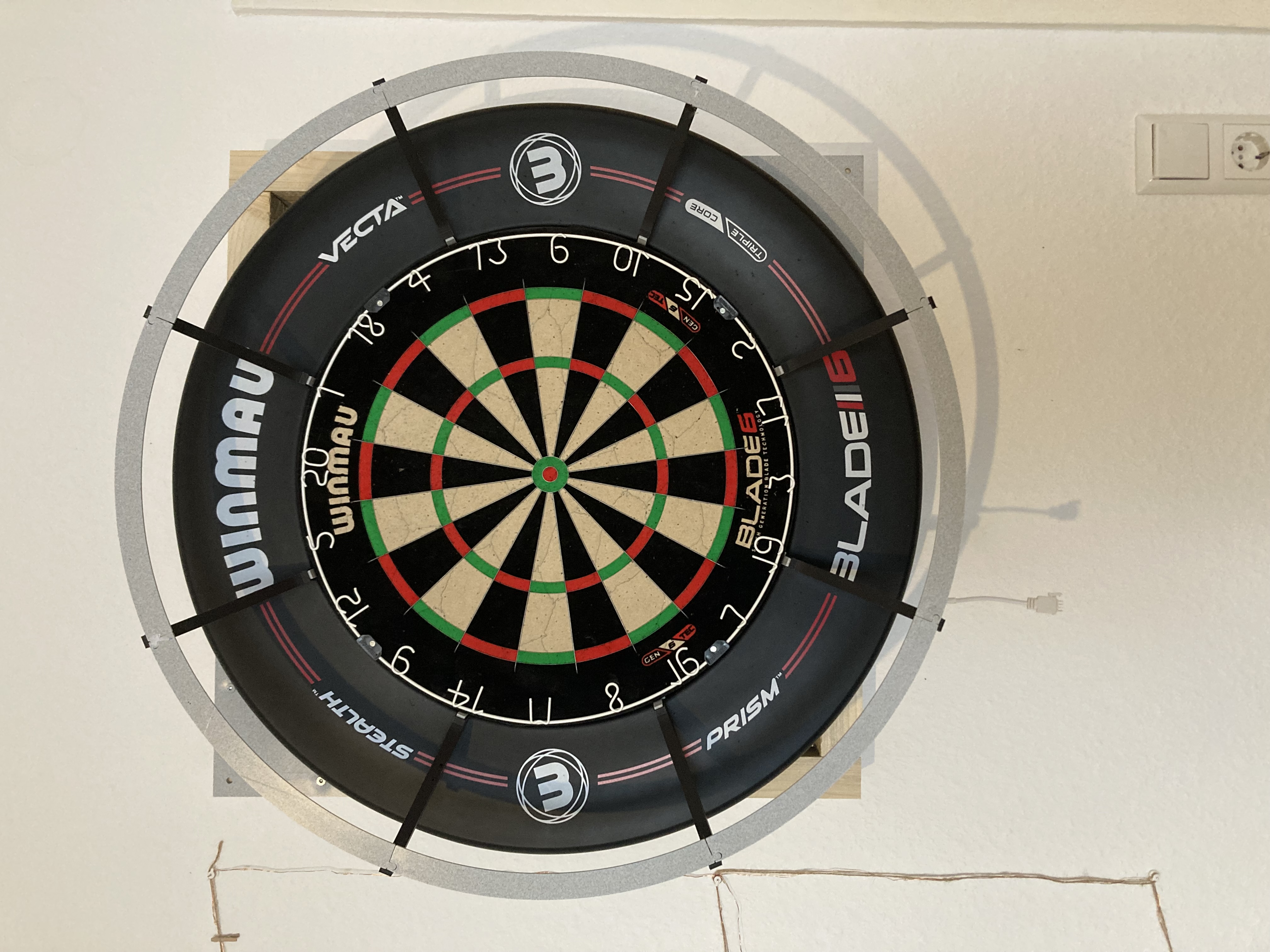 Đèn LED đẹp mắt giúp soi sáng ván đấu phi tiêu của bạn. Bạn có thể dùng nam châm như mô tả hoặc dùng đế giữ để kẹp chân vào giữa bảng và viền.