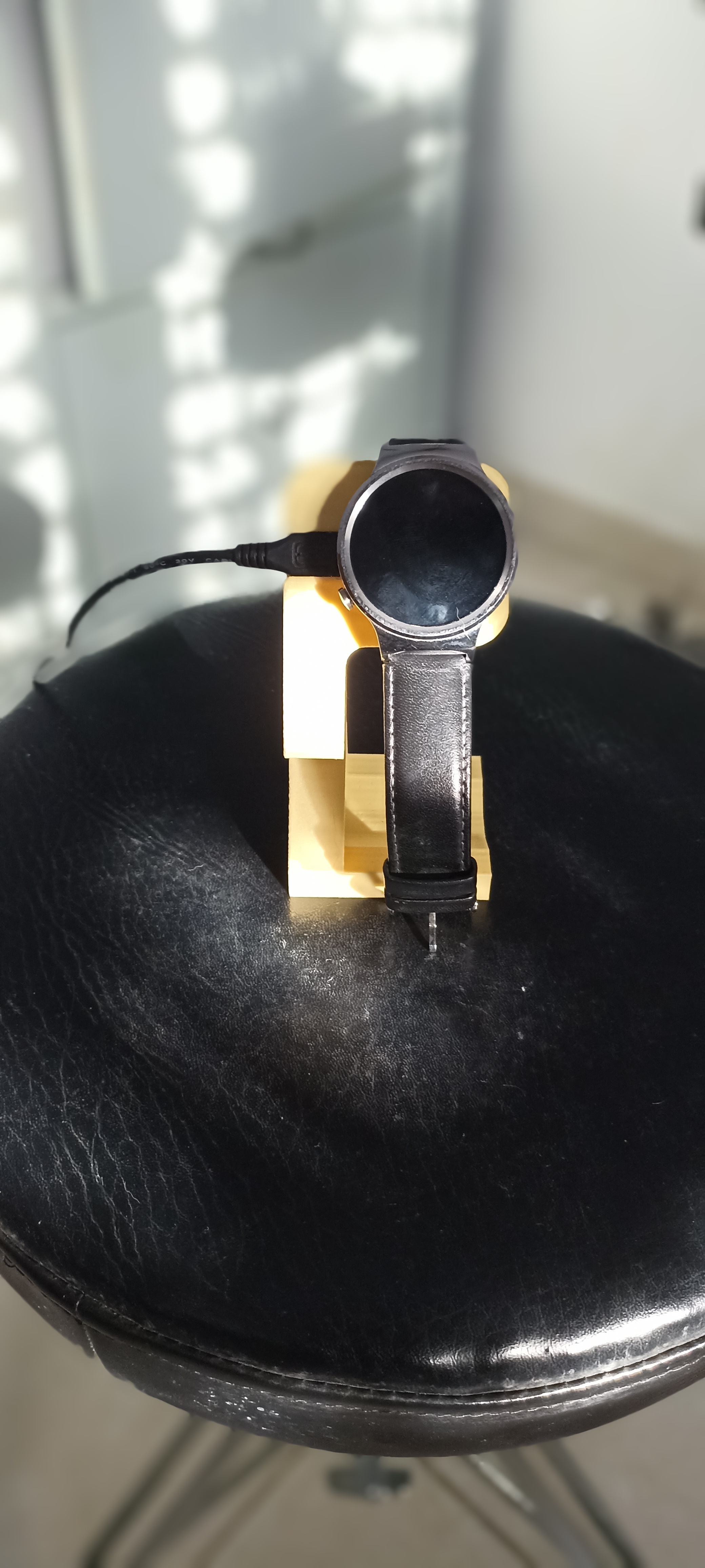 Đế sạc Huawei Watch hiện đại, nhỏ gọn. Sản phẩm này có chỗ để bạn đặt sạc và dây cáp, giúp việc sạc pin cho đồng hồ Huawei của bạn trở nên gọn gàng và tiện lợi hơn. Cần một chút lực để lắp sạc vào, nhưng có thể cải thiện bằng cách in ở độ phân giải cao hơn.