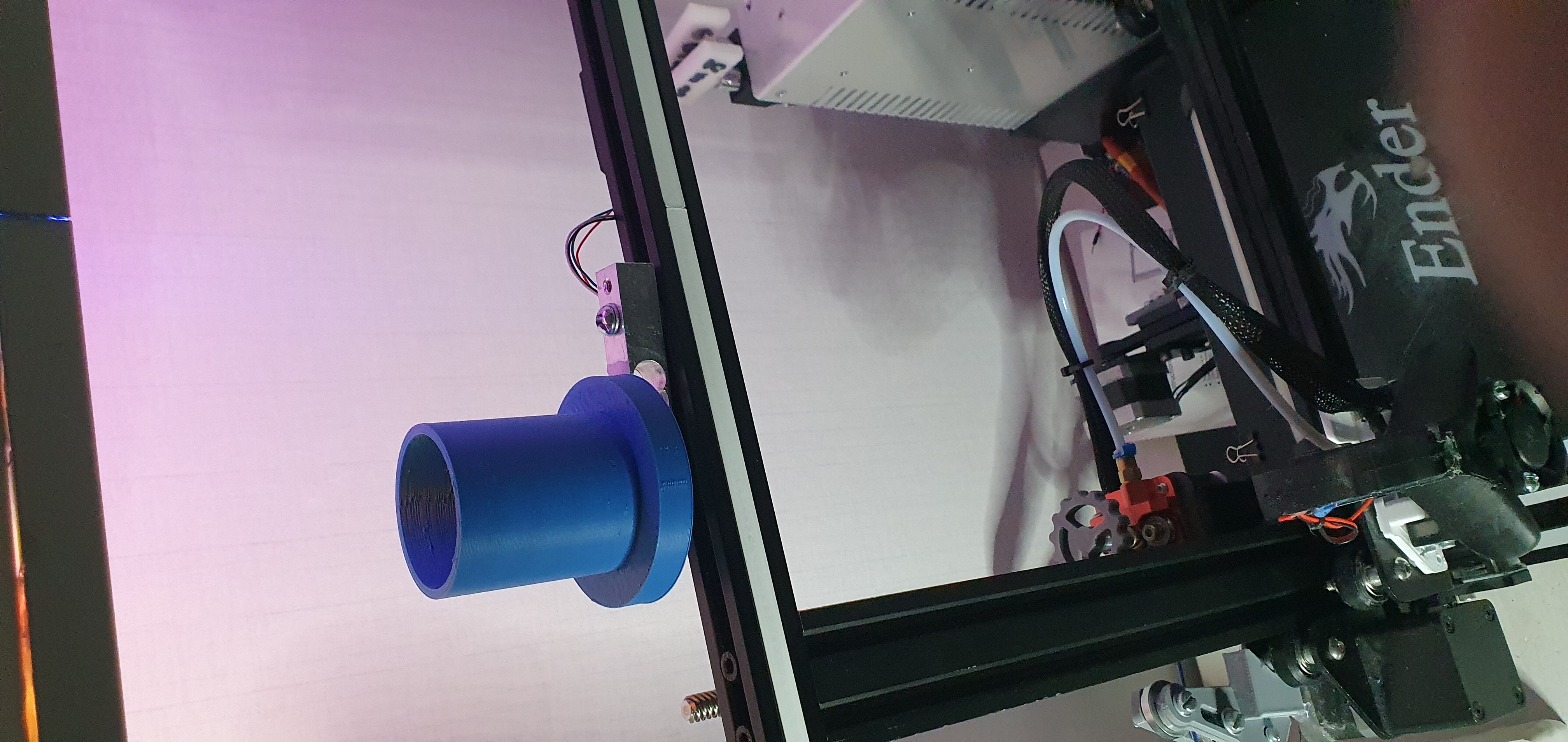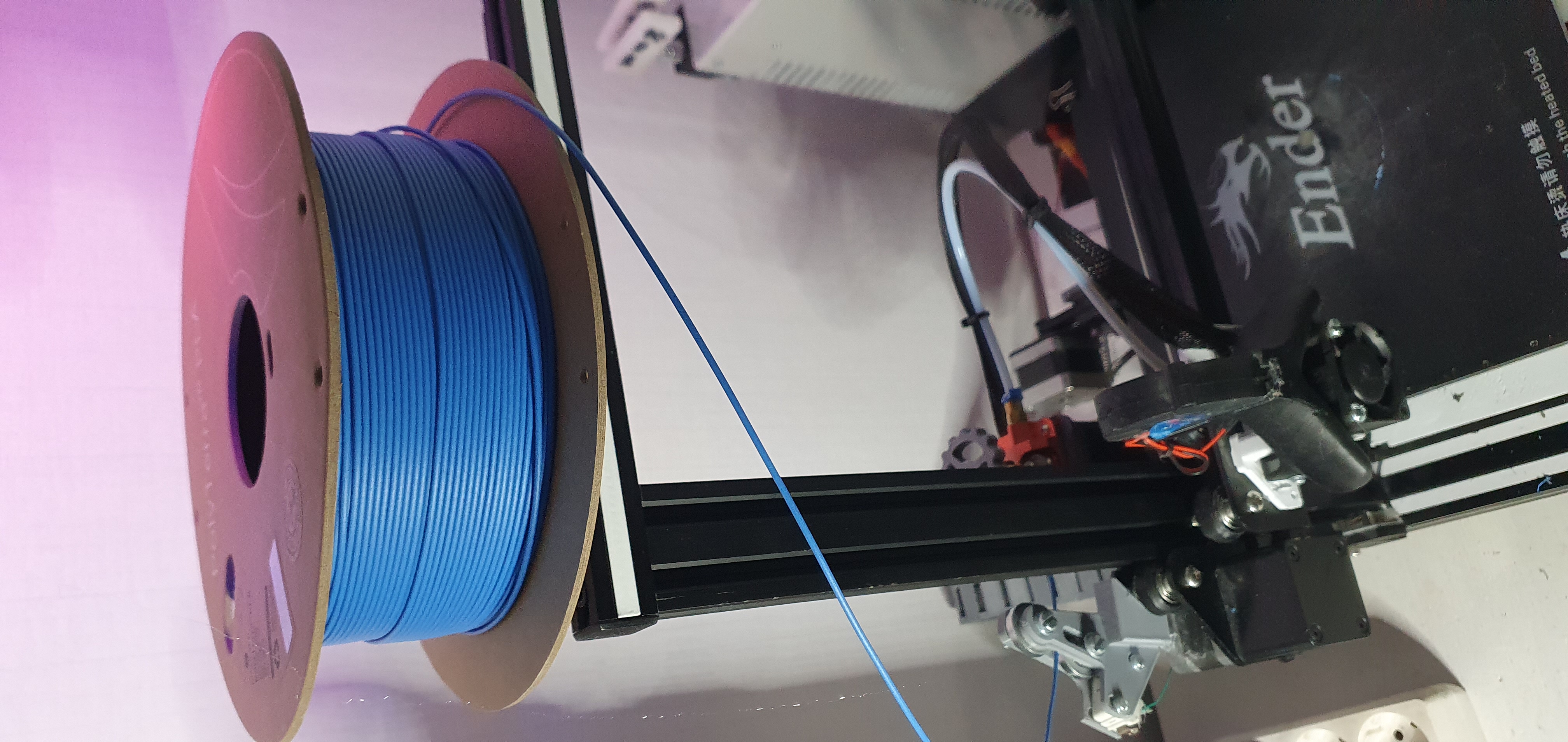 Giá đỡ cuộn dây PLA ngang cho Creality Ender 3. Có 2 lỗ 4mm ở dưới để bắt vít. Cái của tôi được gắn trên cái cân cảm biến trọng lượng.