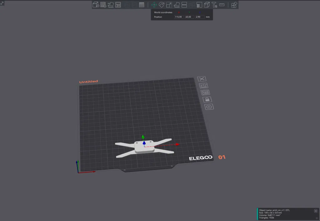 Đối với máy in neptune 4/pro, đặt ở vị trí (X115 Y45) để tránh chạm đầu khi home. In ra, gắn cảm biến, khởi động lại, kiểm tra. Tôi đề xuất làm nóng bàn in đến nhiệt độ in (60°C đối với tôi) để đảm bảo nó không bị bong ra khỏi tấm PEI.