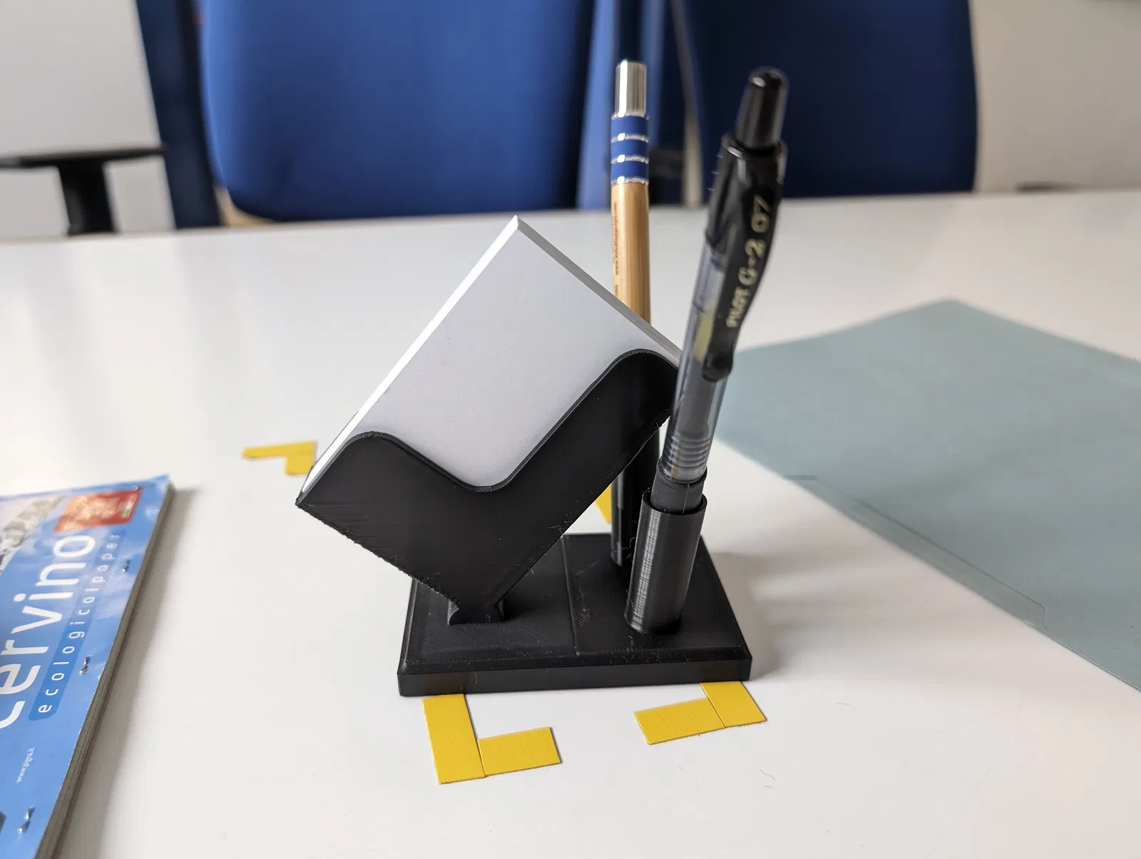 Giá đỡ danh thiếp hiện đại, thanh lịch, tích hợp chỗ cắm 2 cây bút, phù hợp đặt trên bàn làm việc hay bàn họp. Thiết kế có nhiều tùy chọn độ nghiêng và cả phiên bản tối giản không kèm khe cắm bút.