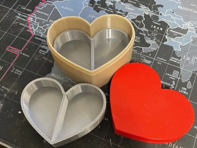 Hộp trái tim với hai vách ngăn. Có thêm phiên bản lớn hơn và một bông hoa bản quyền miễn phí để bạn dán lên nắp hộp. Rất tuyệt để làm quà tặng Valentine!