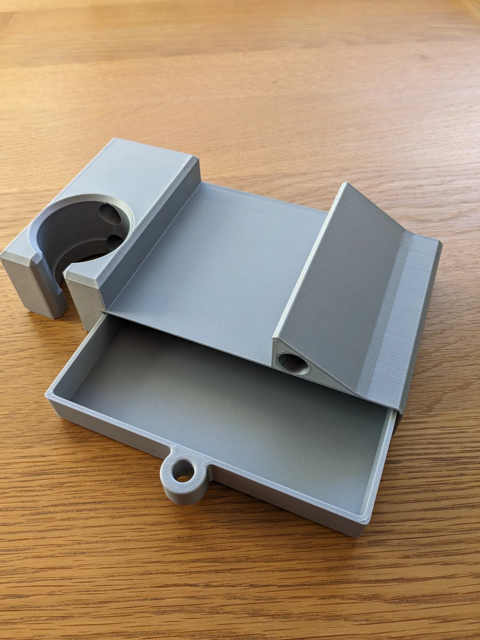 Mấy lỗ bắt vít mình đặt đại thôi, cái này thiết kế để bắt thẳng vô tường, lỗ 4mm và có lỗ chìm; mình xài vít thạch cao.