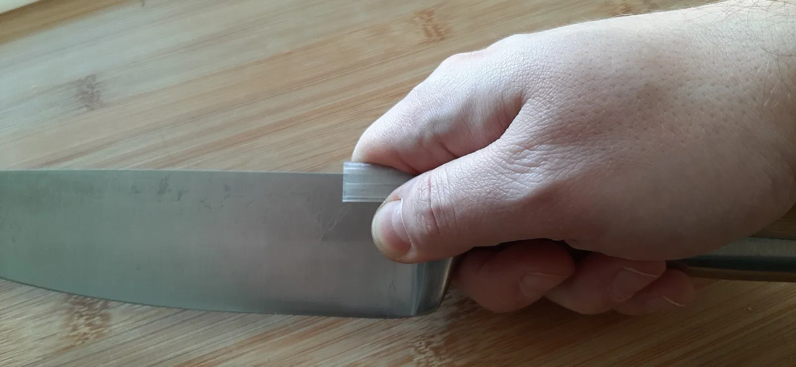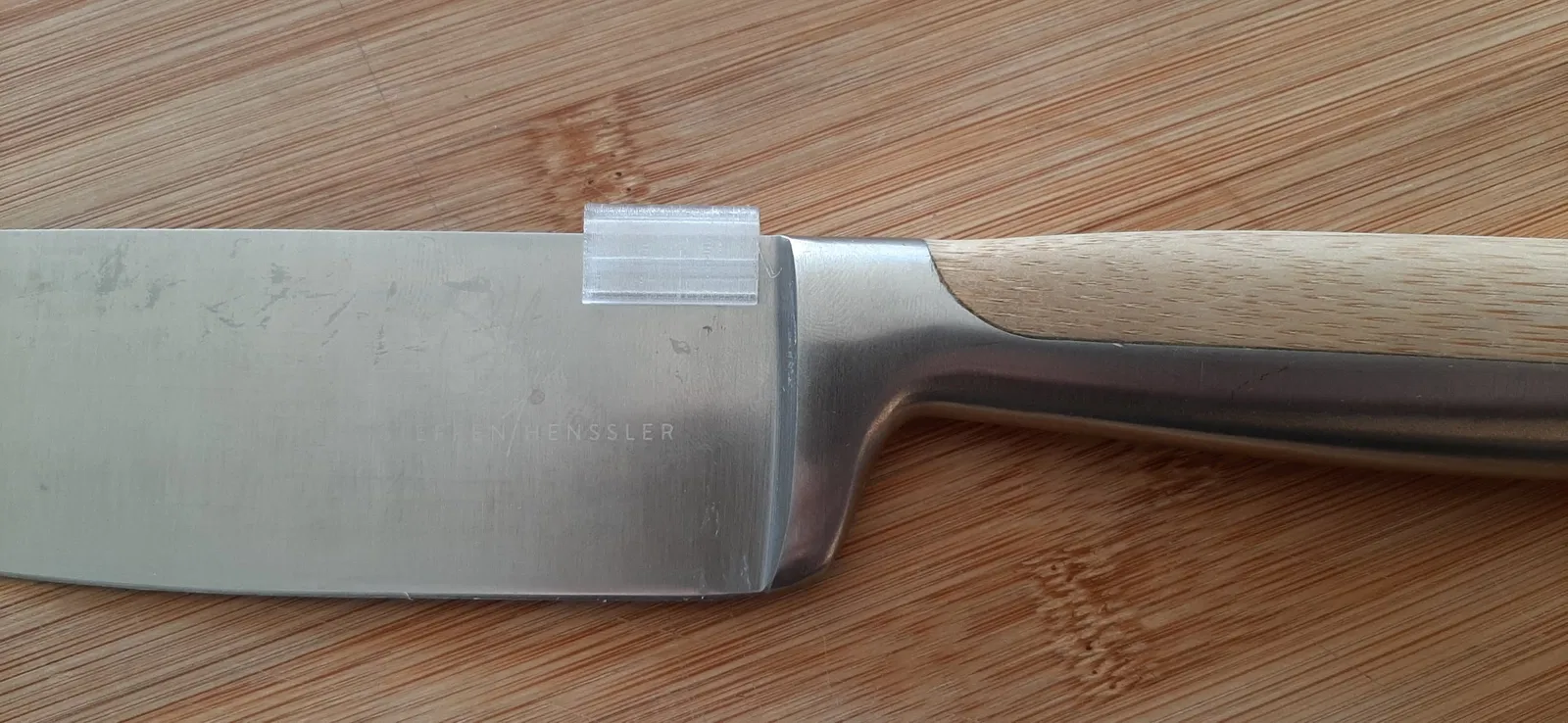 Cái này là đồ bảo vệ cạnh trên dao bếp, dùng để đỡ bị phồng rộp ngón tay khi bạn dùng "chef grip" để cắt đồ nhiều. Có nhiều kích cỡ để lựa chọn và bạn có thể tự chỉnh file .ipt nếu muốn.