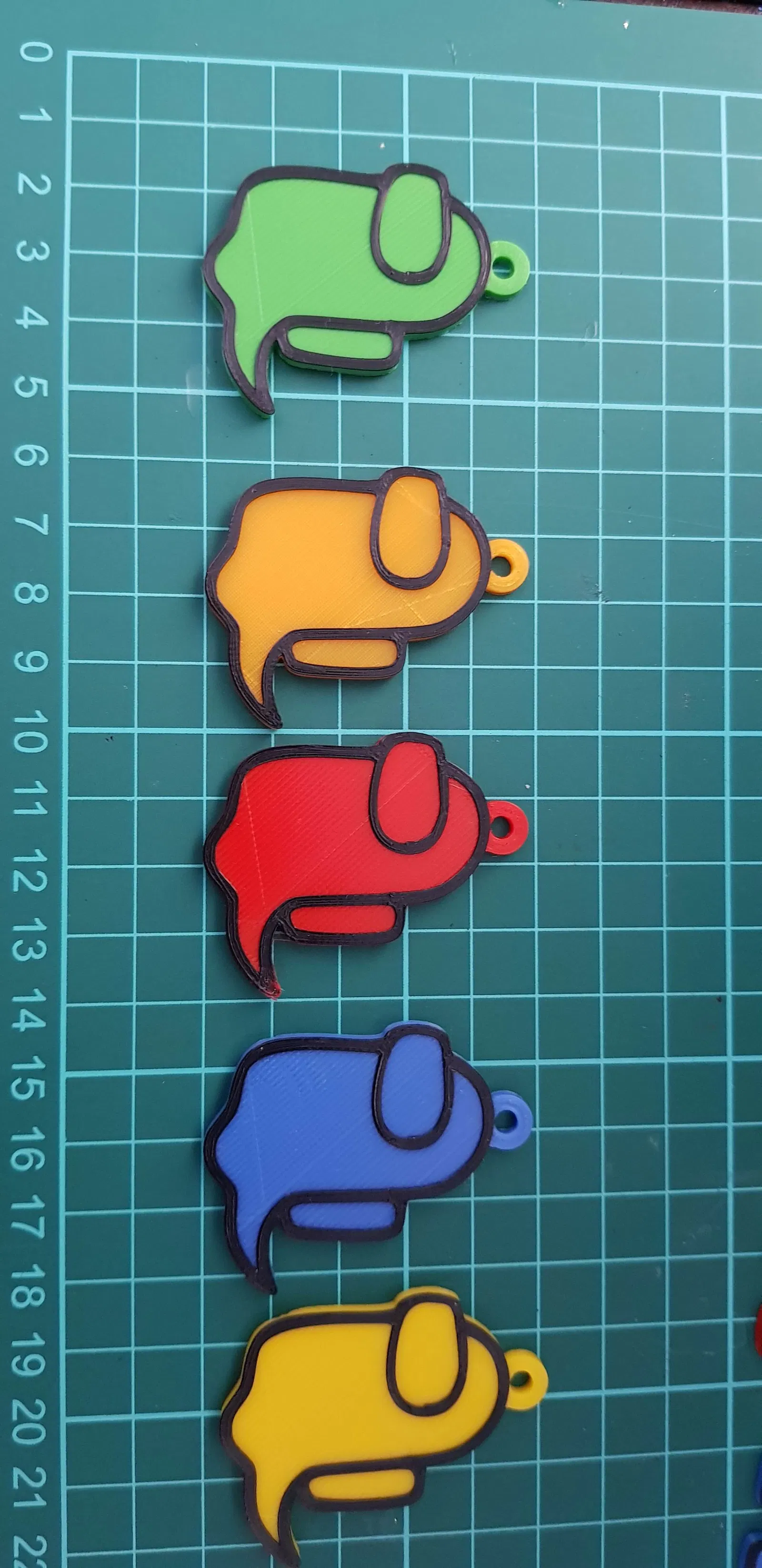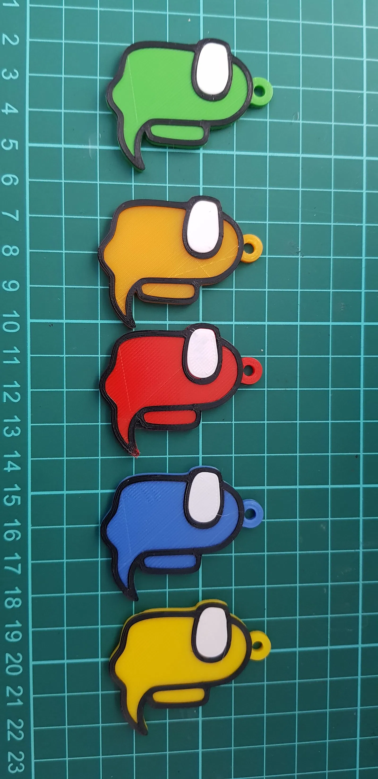 Móc khóa Among Us ma phiên bản 2 phần, dễ in và nhanh hơn. Có cả phiên bản kính với 3 kích cỡ để bạn lựa chọn. In bằng PLA, chiều cao lớp 0.2mm. Thoải mái chọn màu sắc yêu thích nhé!
