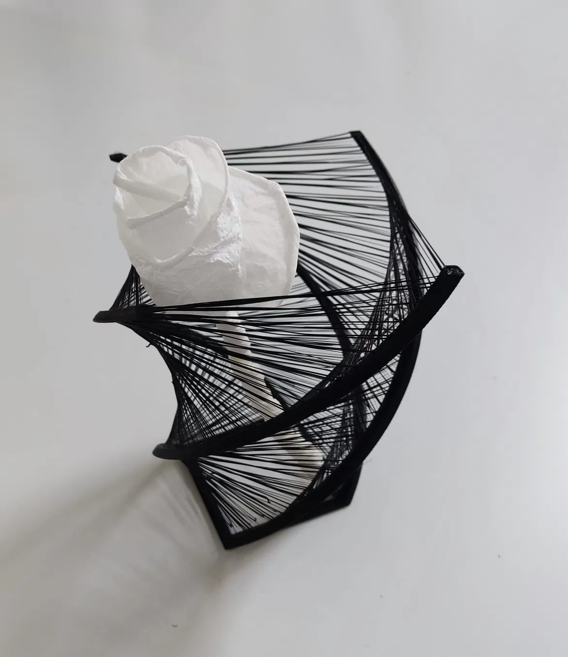 Một cái đế/chân cắm hoa xoắn ốc theo phong cách "string art" đơn giản