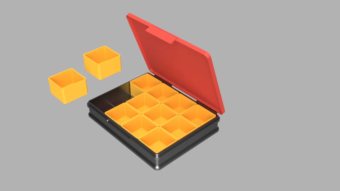 Hộp Đựng Đồ có thể xếp chồng lên nhau, nắp khóa chắc chắn, có chỗ gắn chân đế cao su. In bằng PETG, không cần Raft, không cần Support. Các ngăn bên trong có thể thay đổi và kết hợp. Lý tưởng để lưu trữ và sắp xếp đồ đạc.