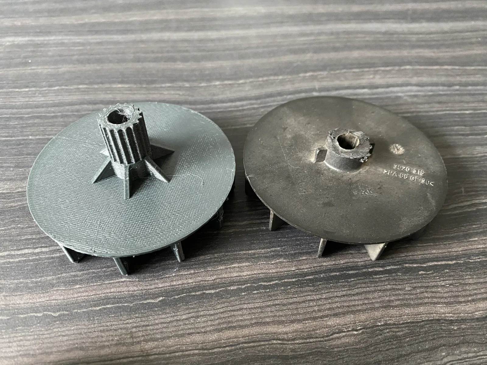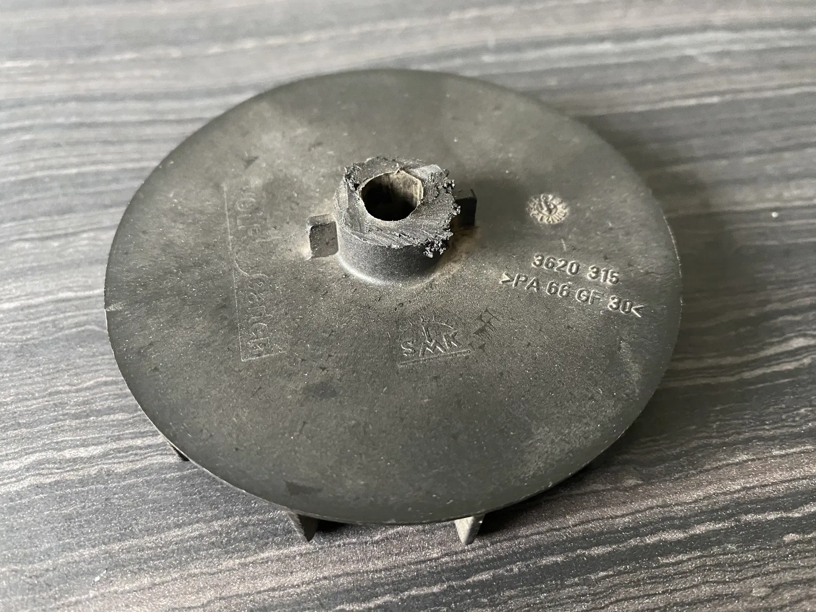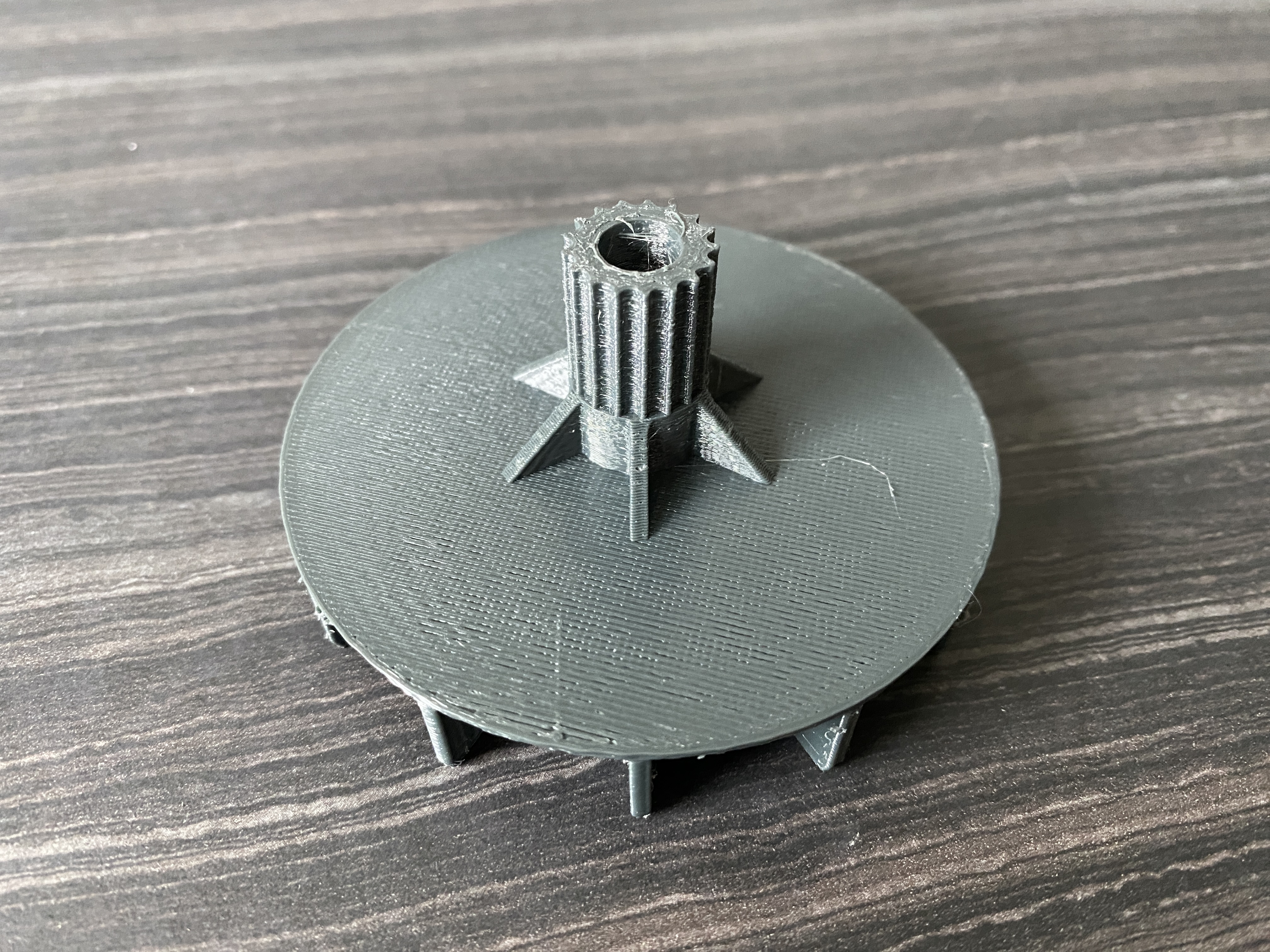 Cái bánh xe quạt của máy xới cỏ của tui bị gãy làm hai. Nhưng mà tui tìm hỏng có ra đồ thay thế zin nên tự thiết kế cái mới dựa trên cái cũ. Nó xài vừa với cái dây curoa răng cưa tên là “HTD 474 3M”.