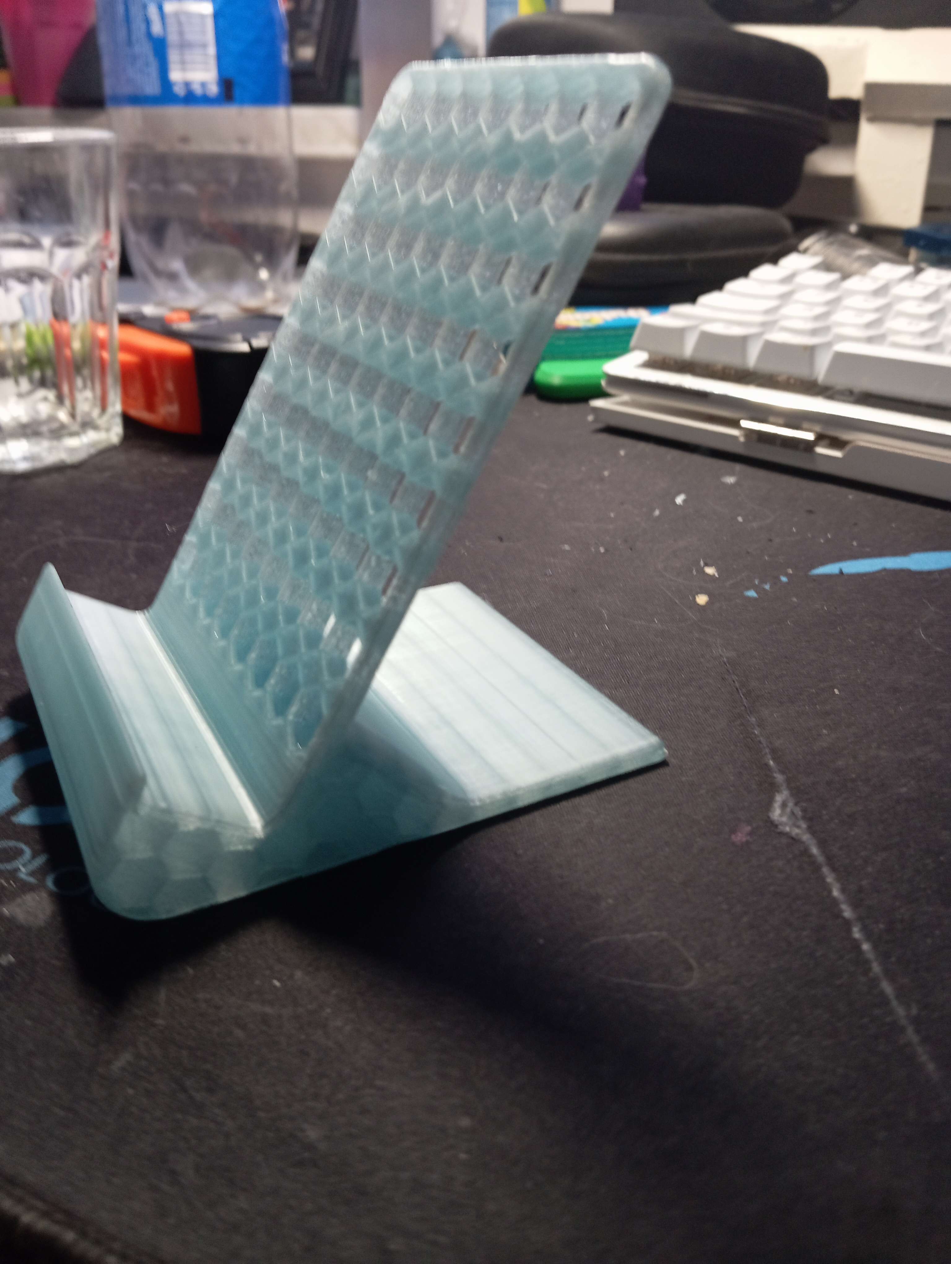 Giá đỡ điện thoại với thiết kế hình tổ ong độc đáo, phù hợp với mọi loại điện thoại. In dọc và cần bật hỗ trợ. Sử dụng 71g vật liệu.