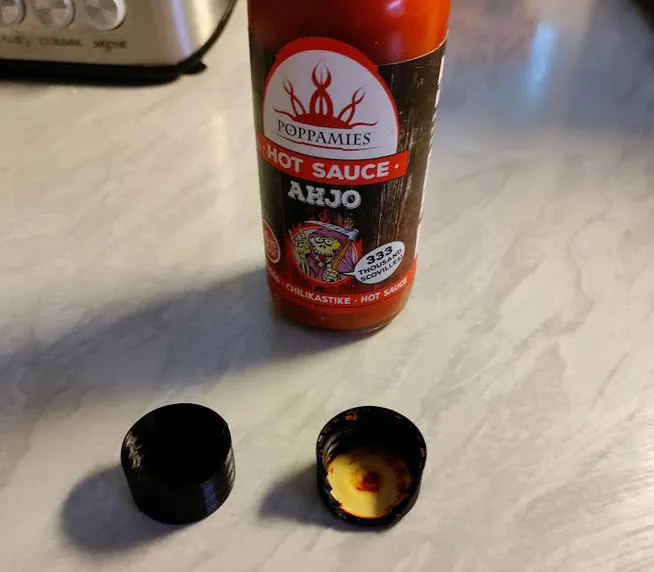 Vì một lý do nào đó, nắp của các chai sốt nóng của chúng tôi liên tục bị hỏng, vì vậy tôi đã in các nắp mới. Tôi đã làm cho kịch bản có tham số để nếu tôi cần một loại nắp khác, tôi chỉ cần nhập các tham số và nó sẽ hoạt động.