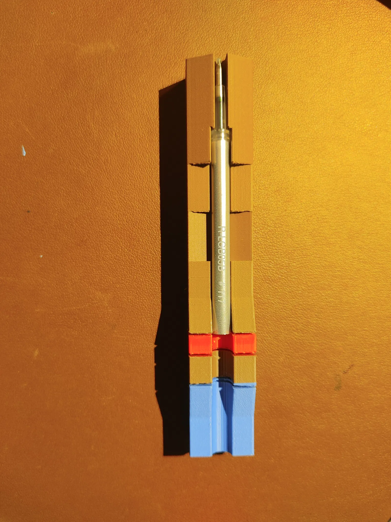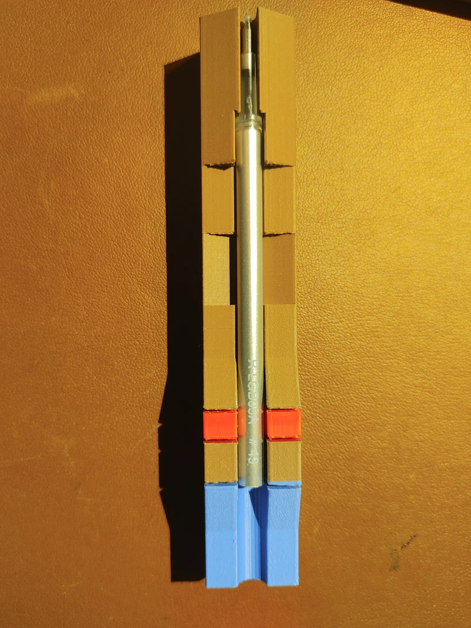 Tui có nhiều loại bút từ nhiều hãng khác nhau, mà đa số hoặc là ruột bi hoặc là ruột rất khó kiếm. Vì vậy, tui đã chế ra cái tool này để cắt ruột bút bi gel thành các độ dài khác nhau để lắp vừa mấy cây bút đó. Tui xài mấy cái ruột M&G với Deli rẻ tiền để thay thế, mà thấy nó vừa hết mấy cây bút.