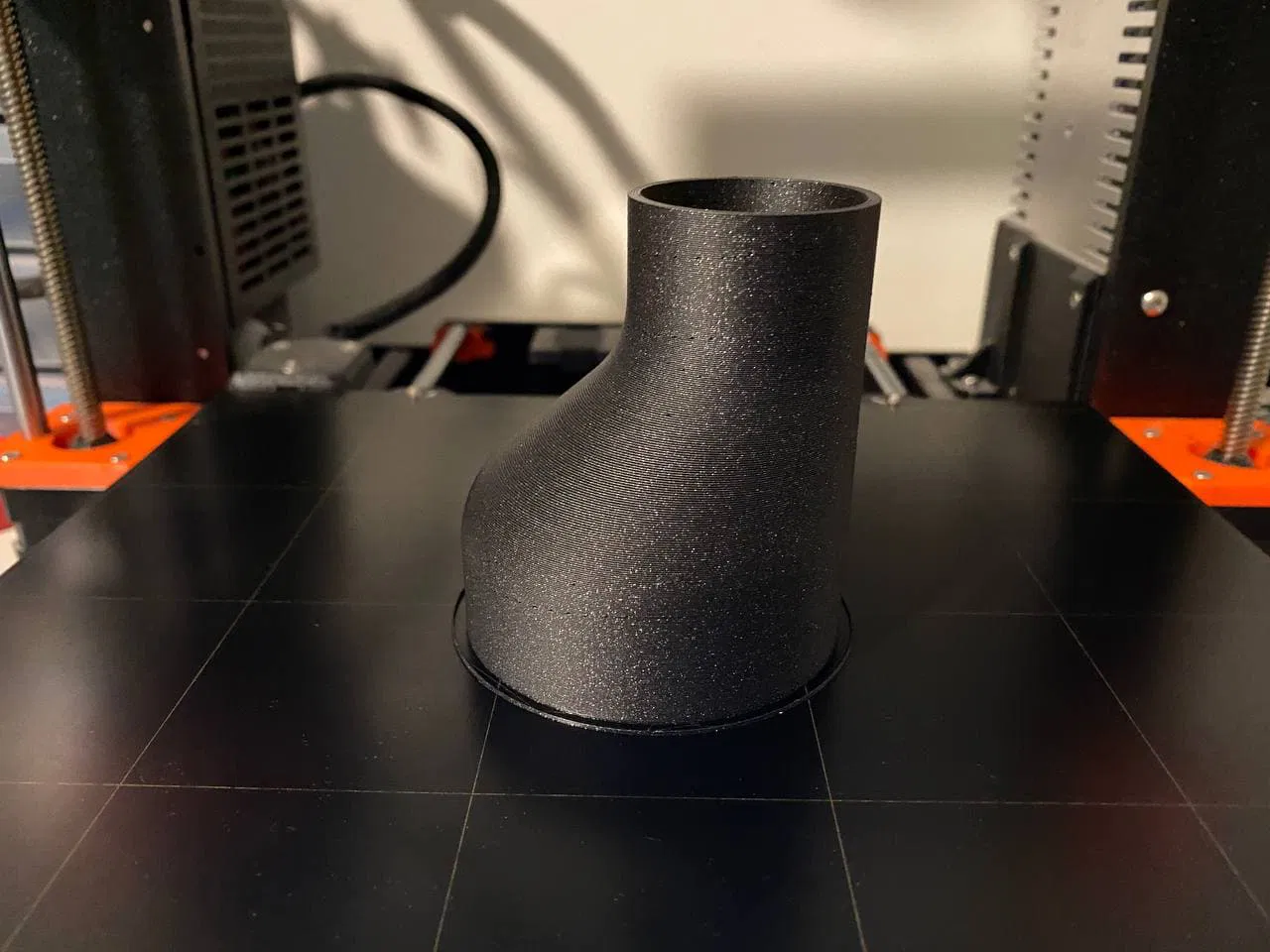 Vết in theo lớp không lý tưởng nên không chắc chắn lắm, nhưng tôi định sơn phủ bên trong bằng nhựa cây để làm mịn dòng bụi + làm chắc, và bằng cách làm như vậy thì không cần giá đỡ, in sạch sẽ và các vết in theo lớp giúp "bám" vào các vật khác nên nó là một sự đánh đổi xứng đáng. Nếu bạn không có nhựa cây thì cứ sơn bên trong bằng keo siêu dính hoặc keo epoxy hoặc sau khi gắn xong thì quấn toàn bộ bộ phận này bằng loại băng keo yêu thích của bạn.
