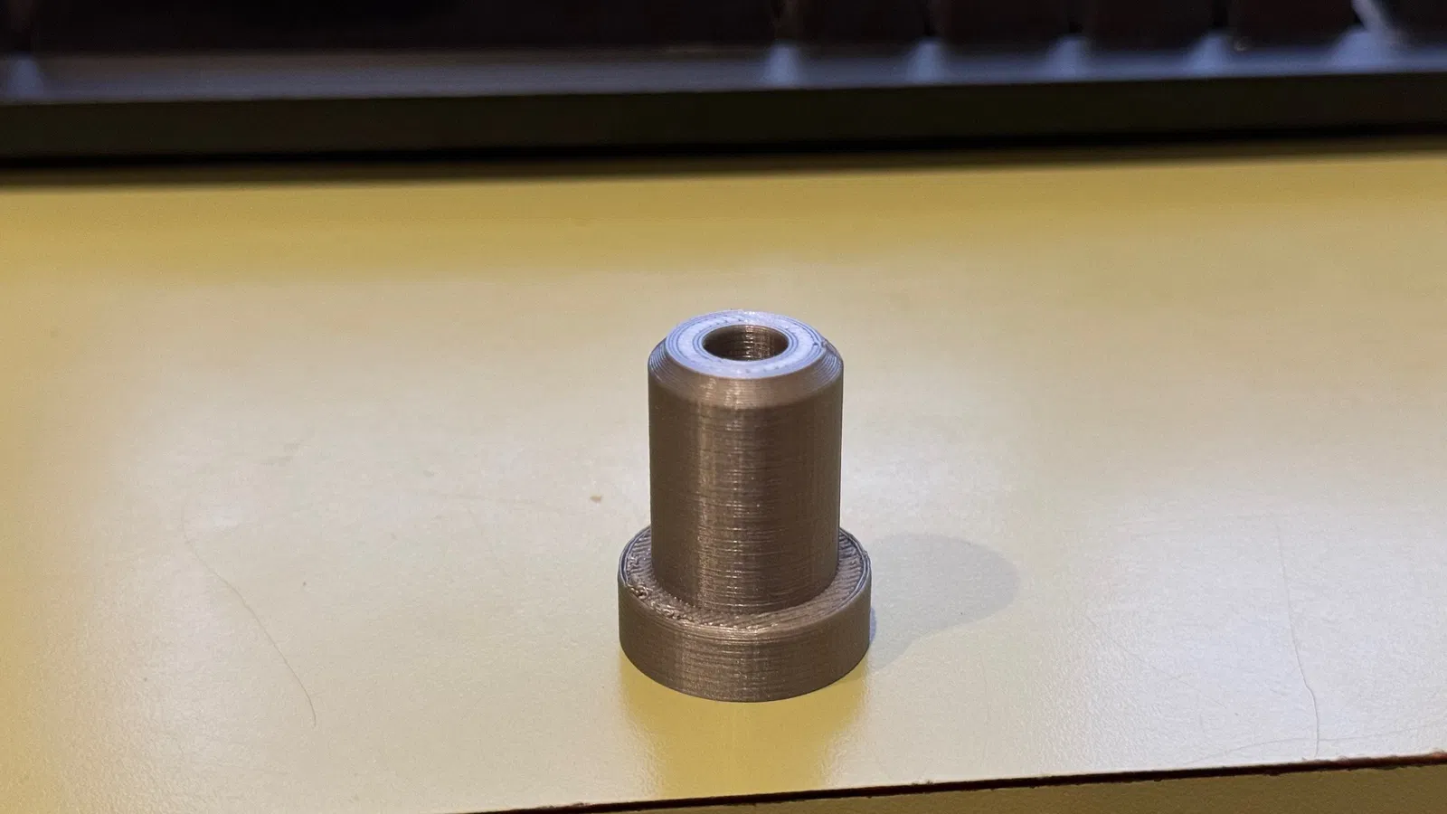 Tui hông có ưng mấy cái bạc đạn (bearing) đi kèm của Eibos nên tui đổi qua mấy cái bạc đạn skateboard cũ, xài ngon hơn hẳn. Cái adapter này cho phép bạn giữ chặt bạc đạn và xài nó trên mấy cái con lăn luôn. Tui in cái này để mặt có bạc đạn ở trên á, nên nó láng mịn hoàn toàn, gỡ support cũng dễ nữa.