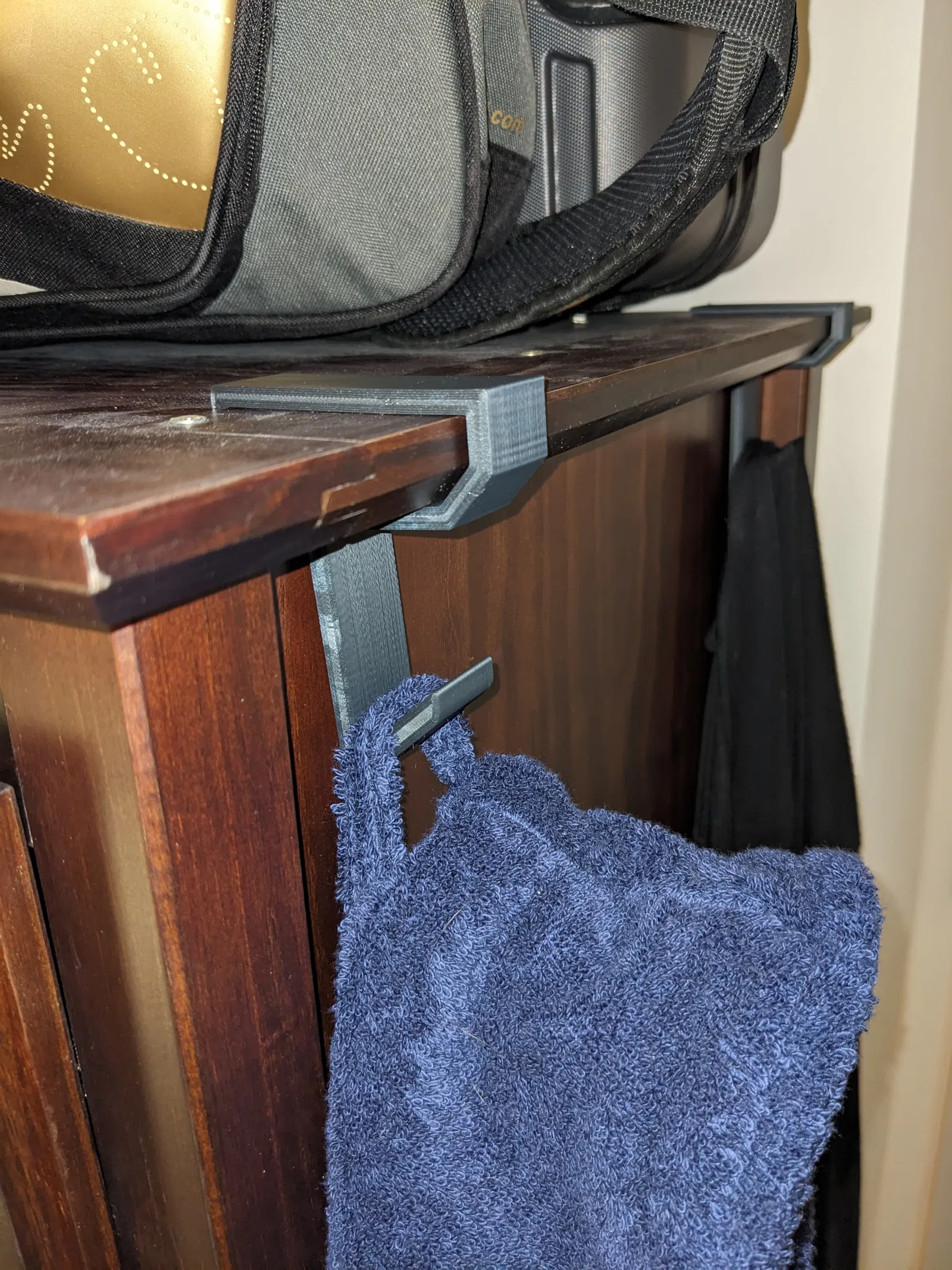 Một móc treo được thiết kế riêng để gắn vào cạnh bên của Tủ quần áo Grainwood Shaker. Móc có khớp với gờ trên đỉnh tủ, giúp cố định và tránh trượt.