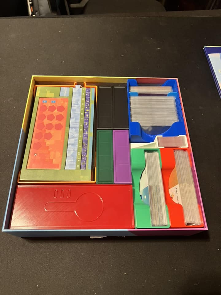 Trước tiên, tôi hiểu rằng việc thêm nhựa vào một trò chơi vốn không có nhựa có thể không phải là điều mà nhà thiết kế mong muốn, nhưng có quá nhiều chi tiết trong hộp so với bốn hộp giấy đi kèm trong trò chơi (và hộp của tôi không đóng lại được).