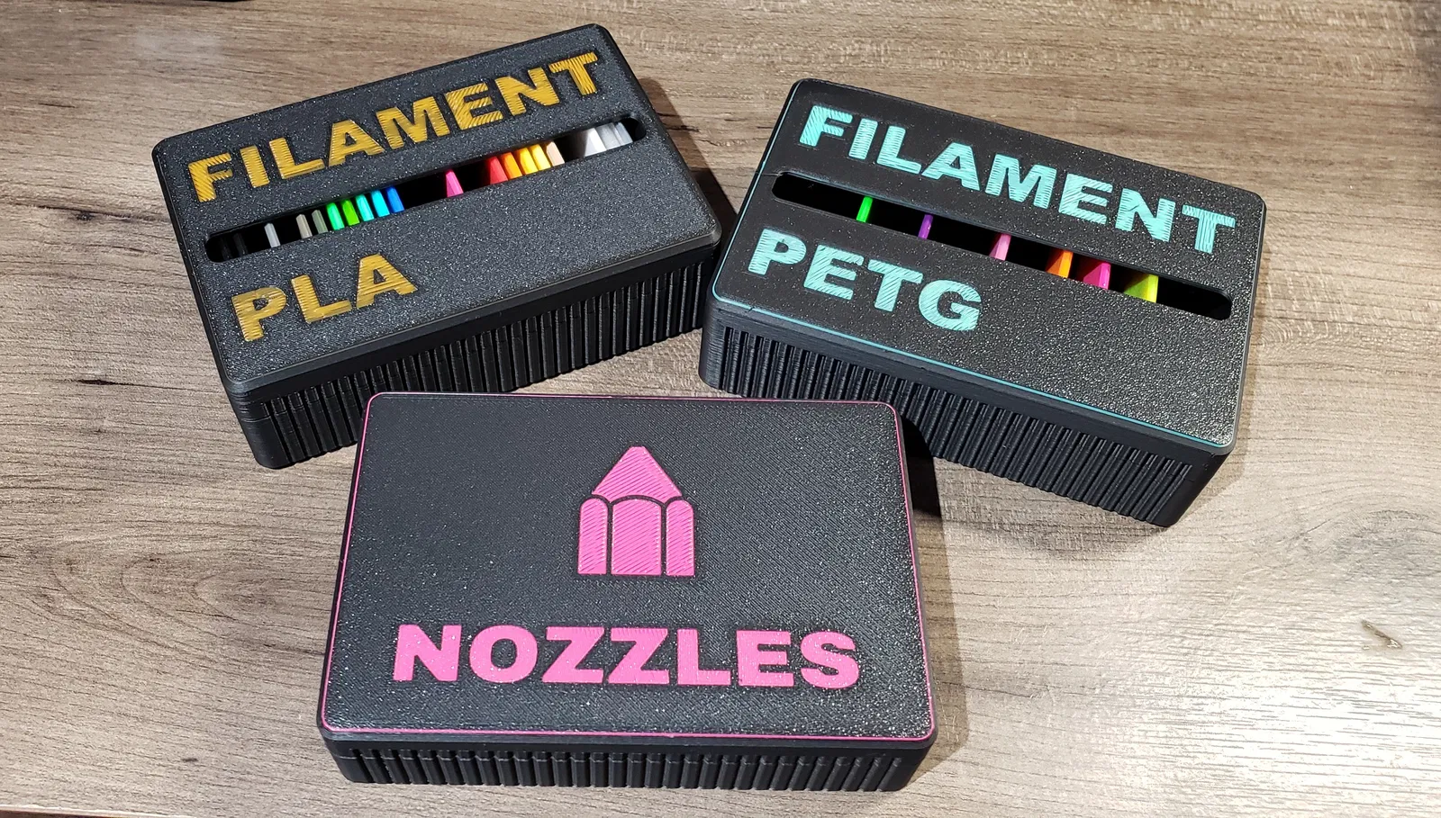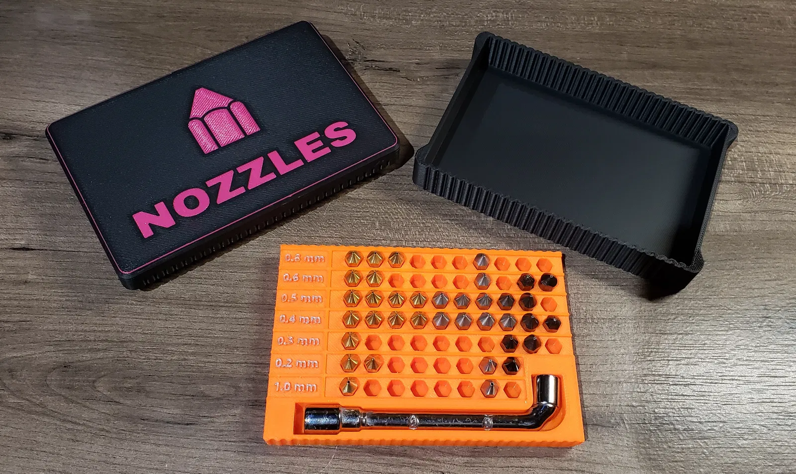 Chiếc hộp này, có kèm nắp và khay tháo rời, được thiết kế để giữ đầu phun và cờ lê của bạn một cách gọn gàng. In bằng PLA, nó được thiết kế để phối hợp hoàn hảo với Hộp mẫu Filament, giúp không gian làm việc của bạn thêm phần ngăn nắp và chuyên nghiệp.