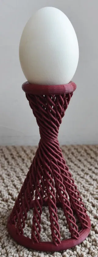 Nếu muốn, trước khi in, bạn hãy đo đường kính của trứng tại vị trí bạn muốn đặt lên chân đế và chỉnh sửa cho phù hợp. Bạn có thể làm điều này bằng cách chỉnh sửa file _.scad và tạo ra file .stl mới, hoặc bằng cách scale (phóng to/thu nhỏ) trong slicer của bạn.