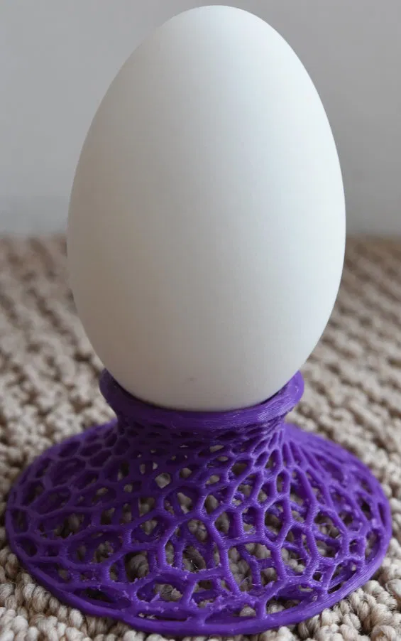 Chân đế đựng trứng Phục sinh bao gồm mã nguồn OpenSCAD cho phép bạn tùy chỉnh. Bạn có thể thay đổi kích thước để phù hợp với trứng của mình. Mẫu này được thiết kế để in không cần raft hoặc support. Xem các nhóm khác và cài đặt in.