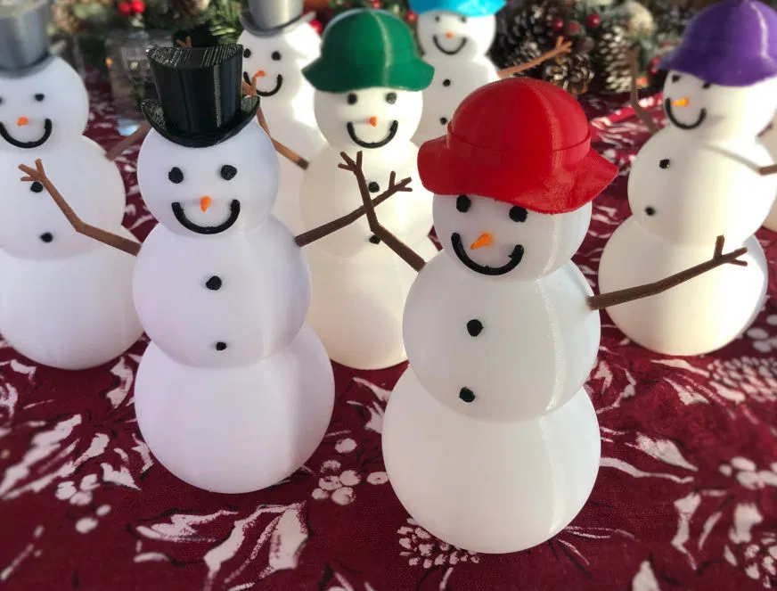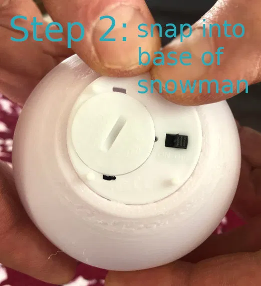 Tất cả các bộ phận cần được xử lý sau in để loại bỏ vật liệu thừa. Đặc biệt là lỗ tròn nơi bạn lắp đèn trà LED vào đáy người tuyết. Hãy thử lắp các bộ phận khô trước khi dán. Dán các bộ phận lại với nhau bằng keo siêu dính.