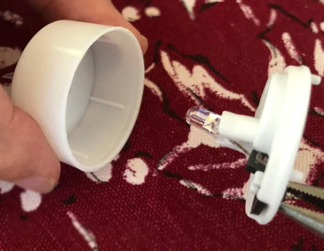 Nếu thích, trước bước 2, bạn có thể tháo bộ khuếch tán ánh sáng ra khỏi đỉnh đèn trà LED và trượt nó qua đèn LED, sau đó dán cố định bằng keo siêu dính.